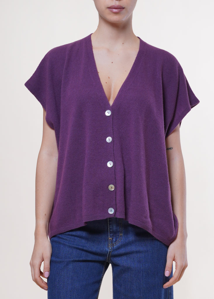 Dixie - Gilet smanicato in misto cachemire - MELANZANA