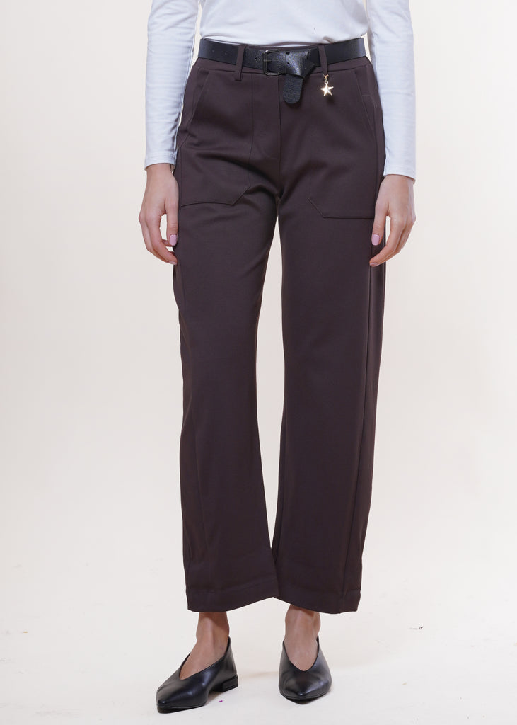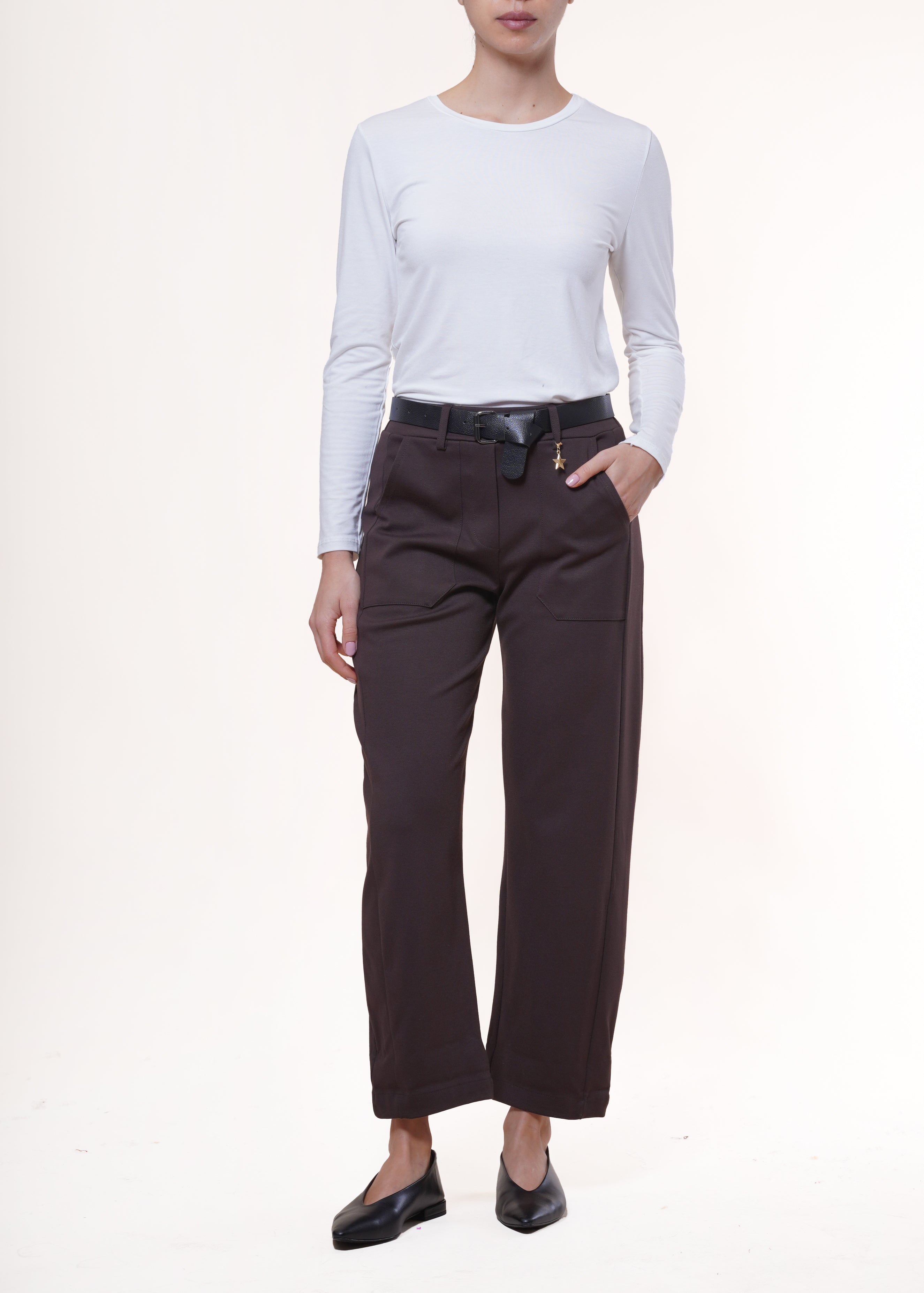 Susy Mix - Pantalone barrel in punto milano - MORO