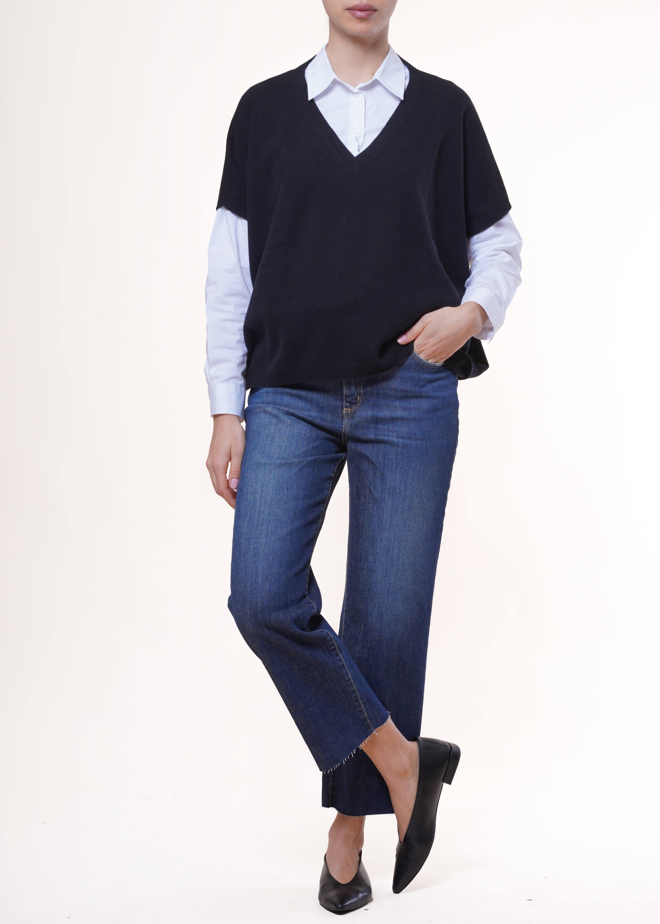 Angela davis - Gilet scollo a V in lana - NERO