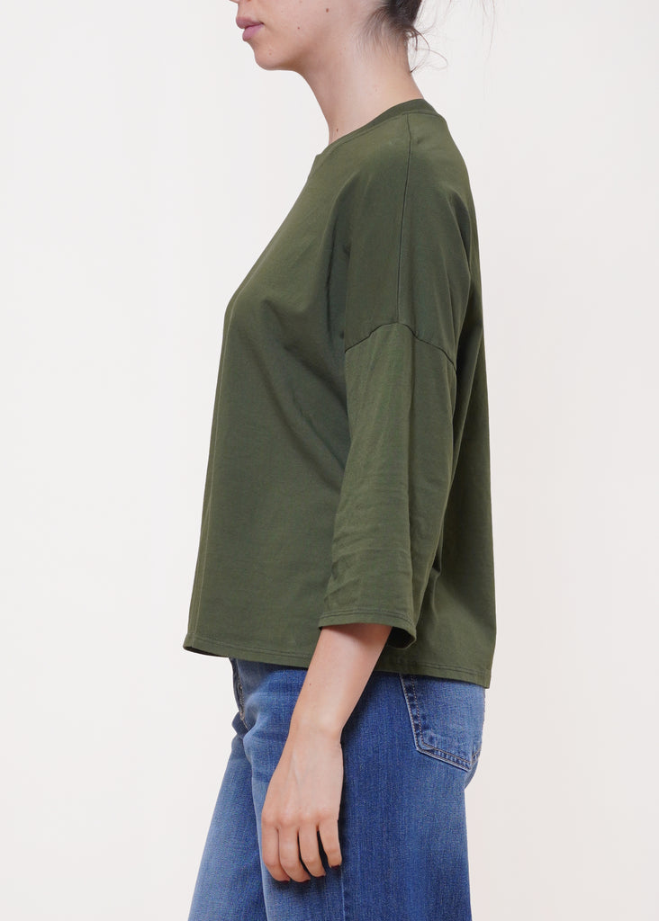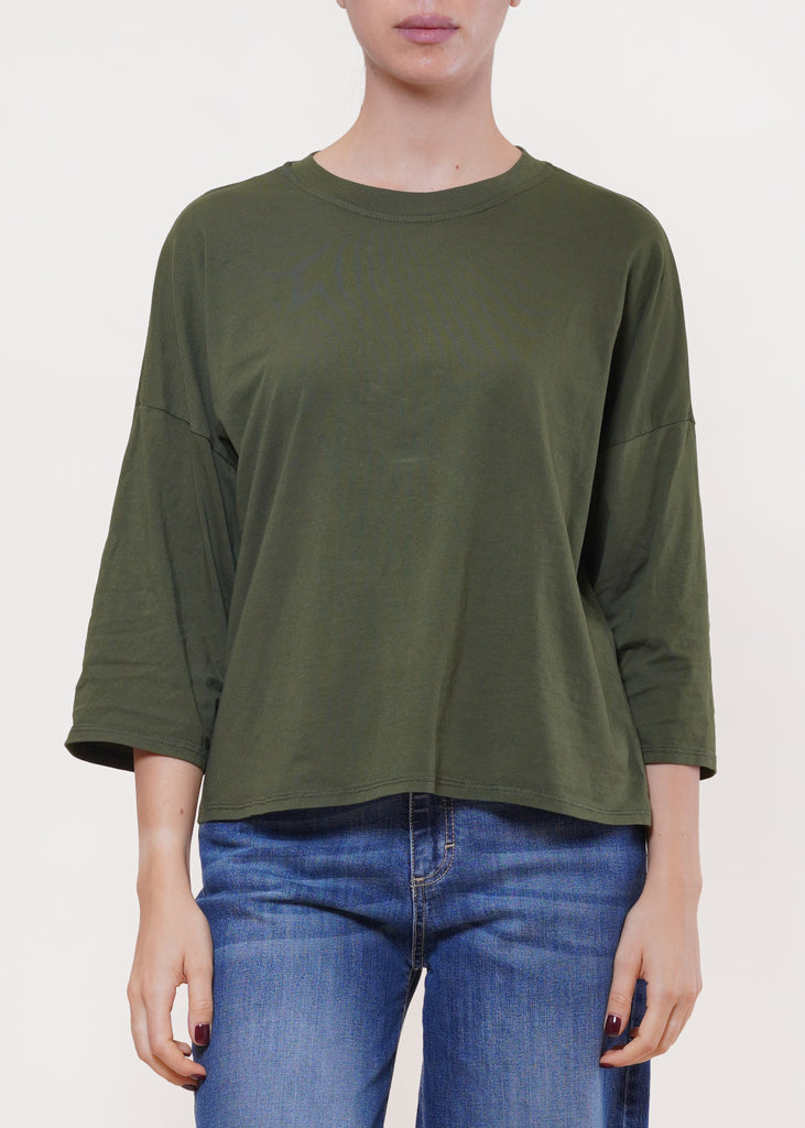 Anì - T-shirt girocollo manica tre quarti - VERDE MILITARE
