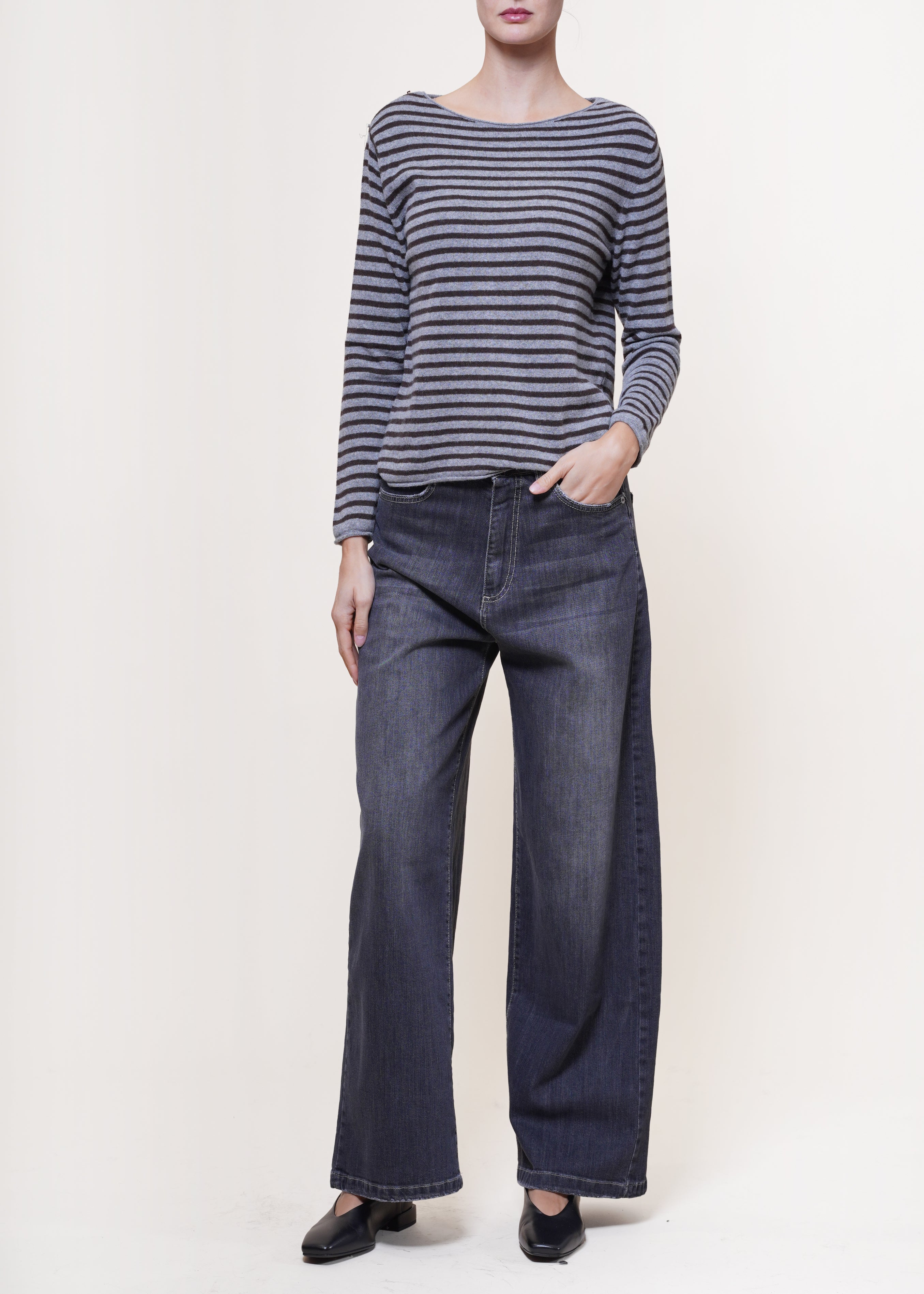 Anì - Maglia a righe misto cachemire e lana - GRIGIO/MORO