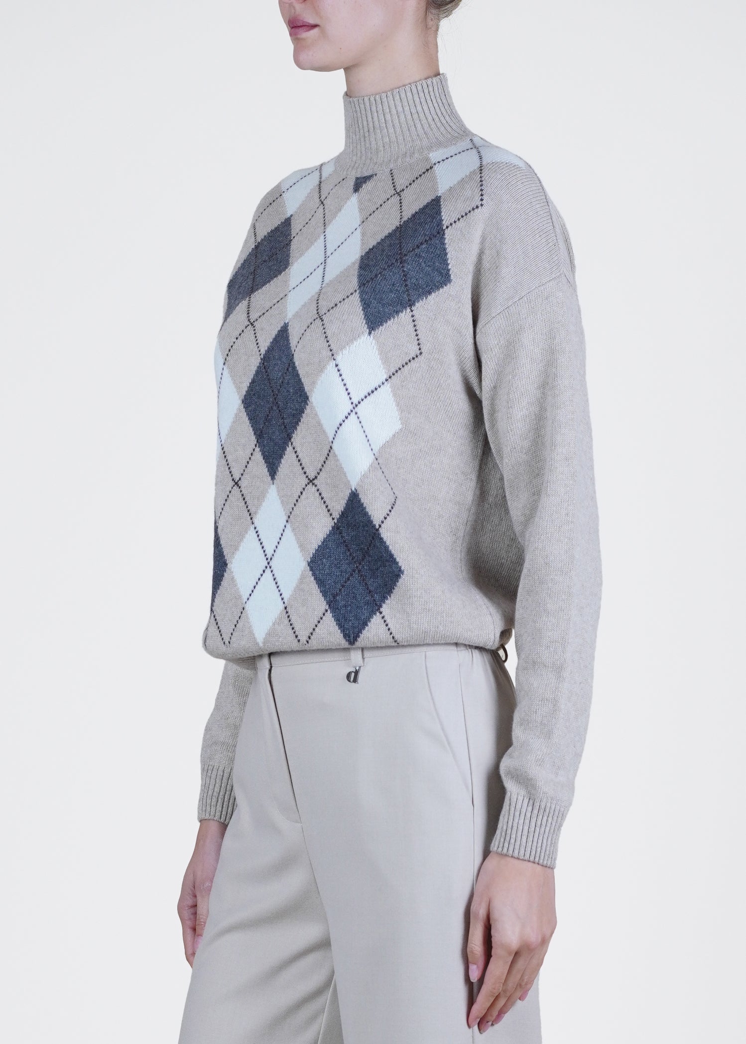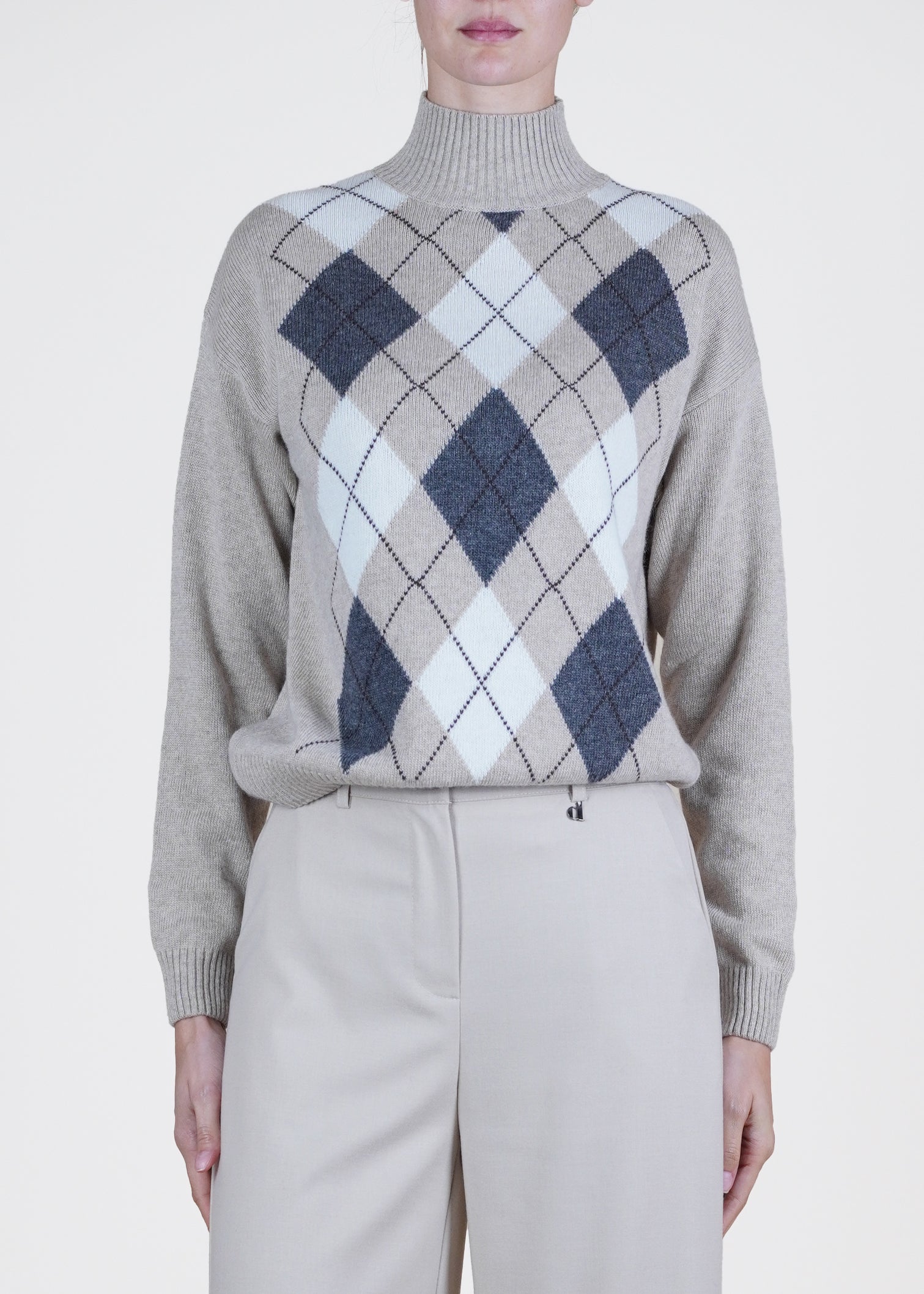 Motel - Maglia a rombi misto lana e cachemire - BEIGE