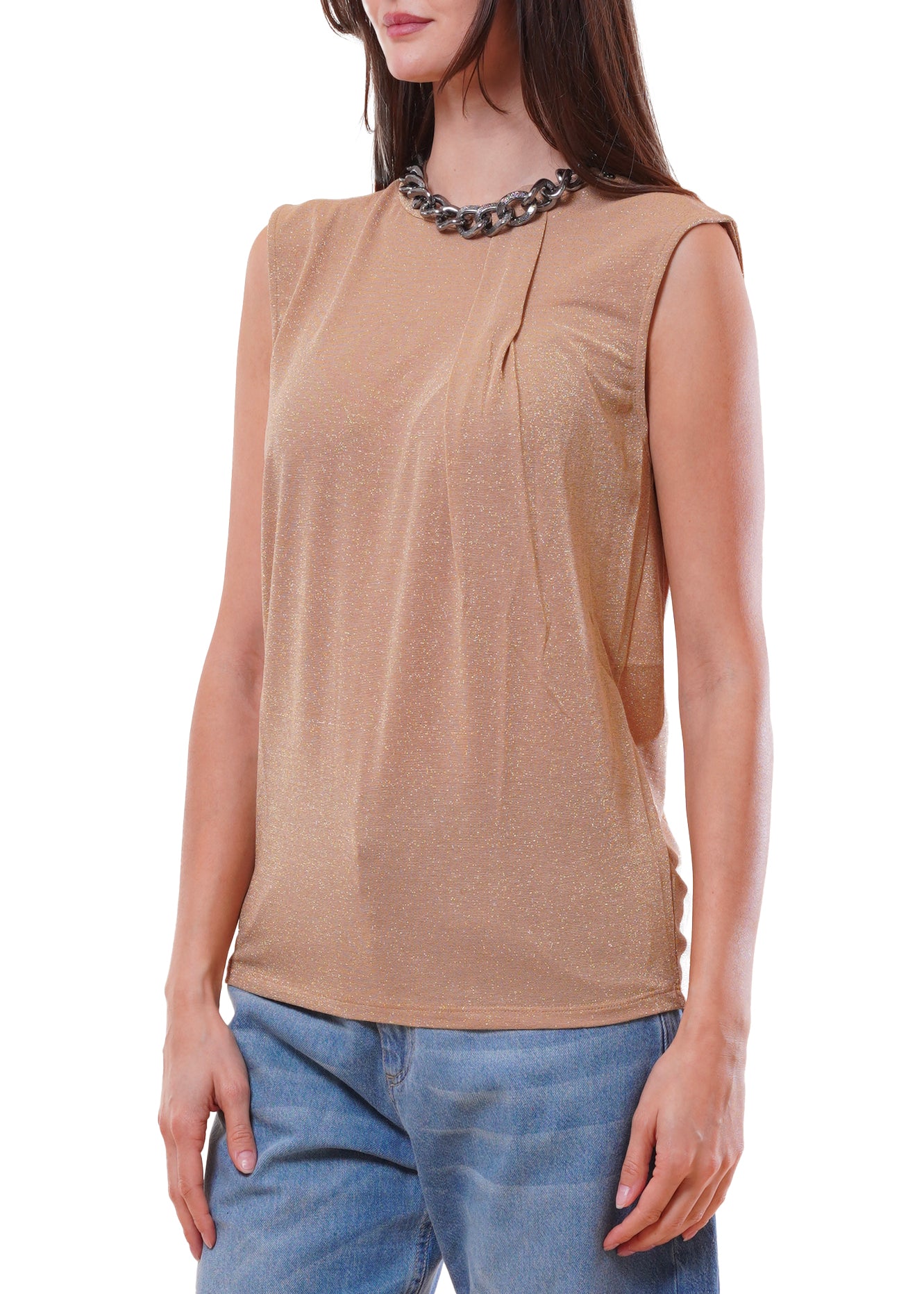 Kontatto - T-shirt lurex con drappeggio - ORO