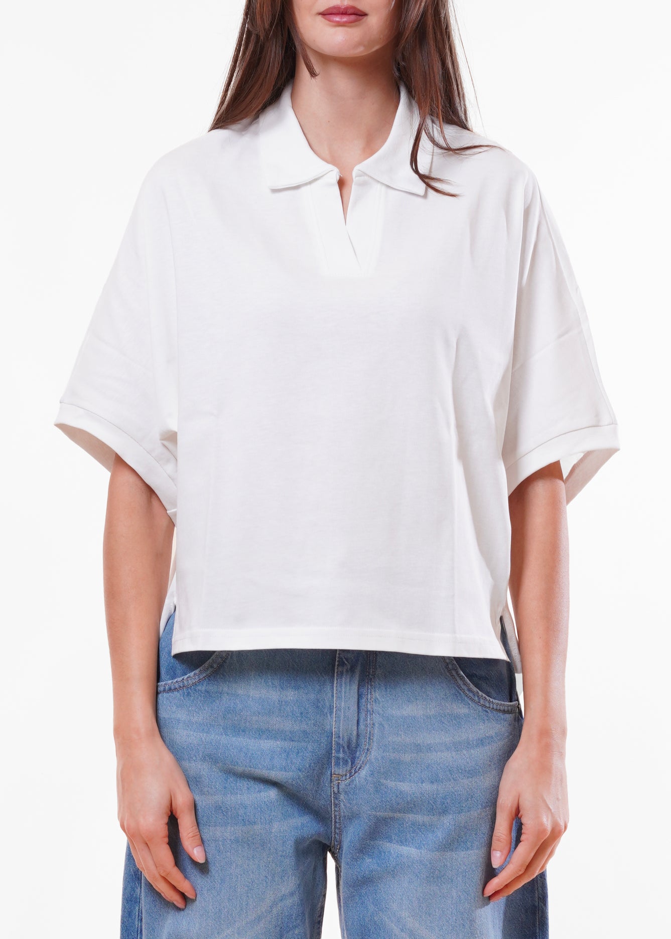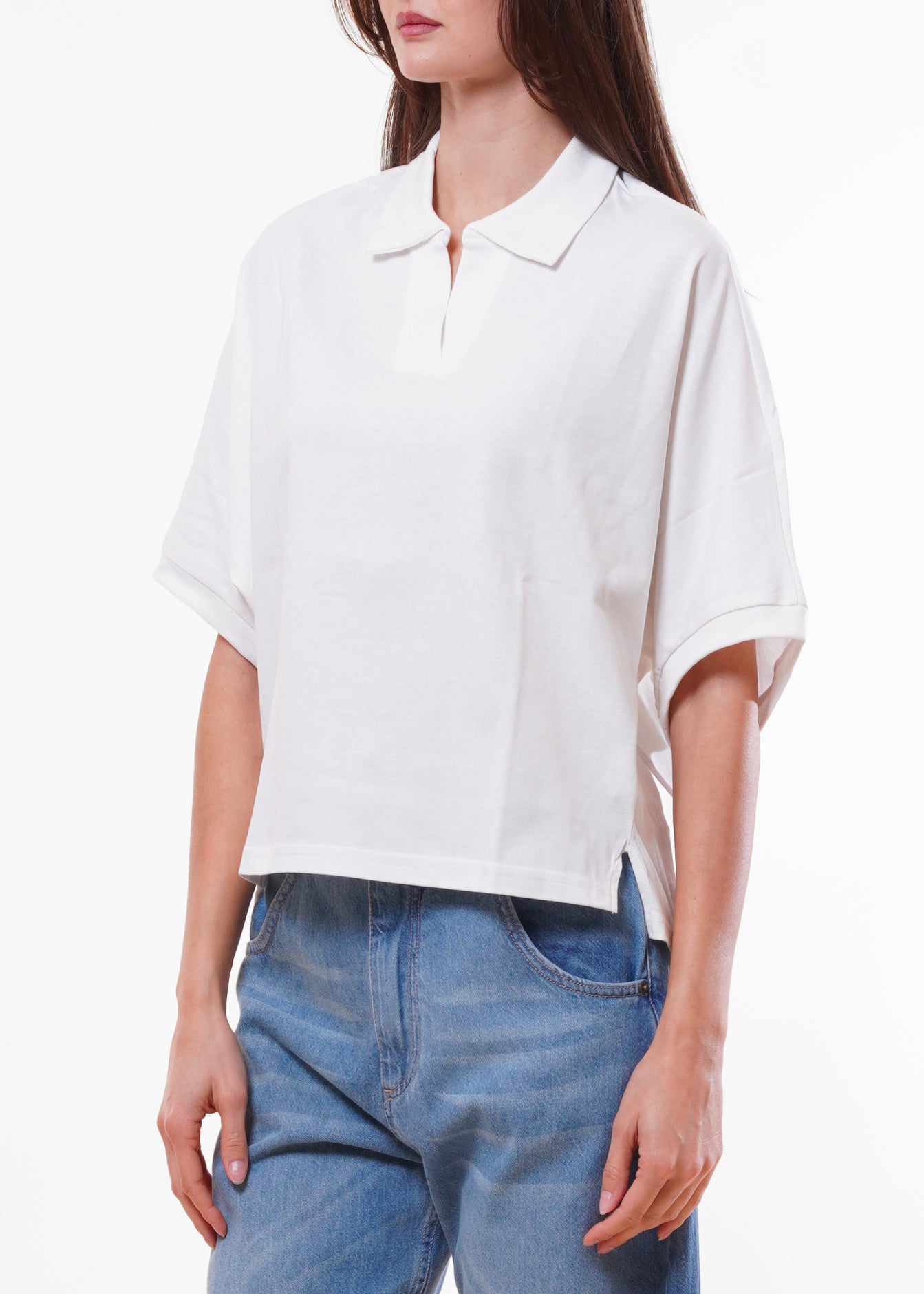 Kontatto - T-shirt scollo polo stondata - OFF WHITE