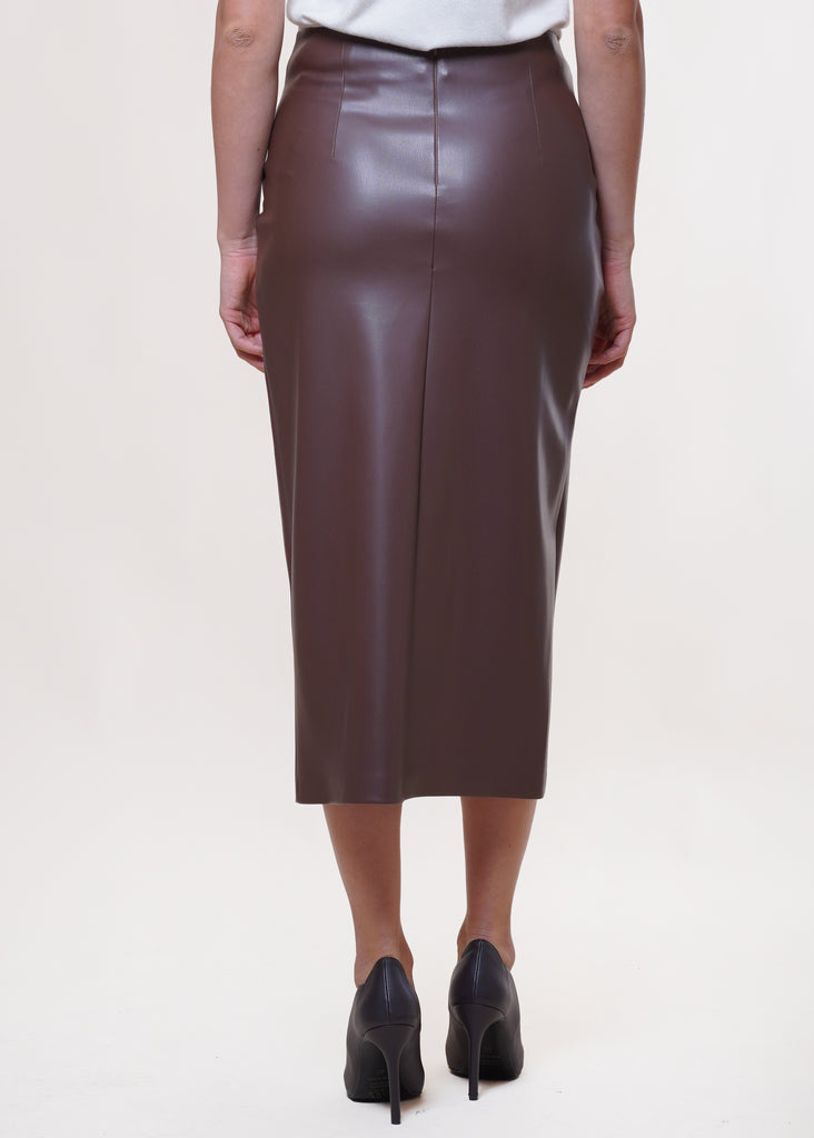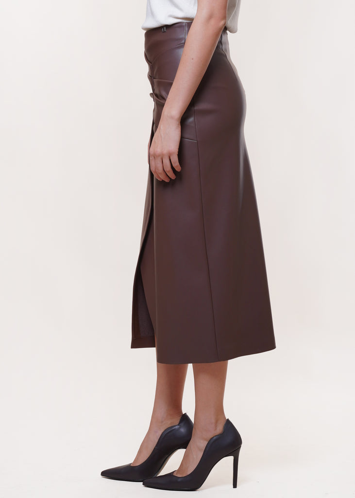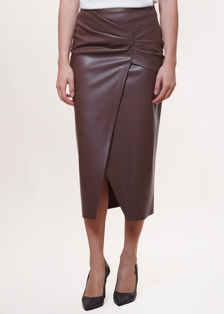 Dixie - Gonna midi eco-pelle con drappeggio - MORO