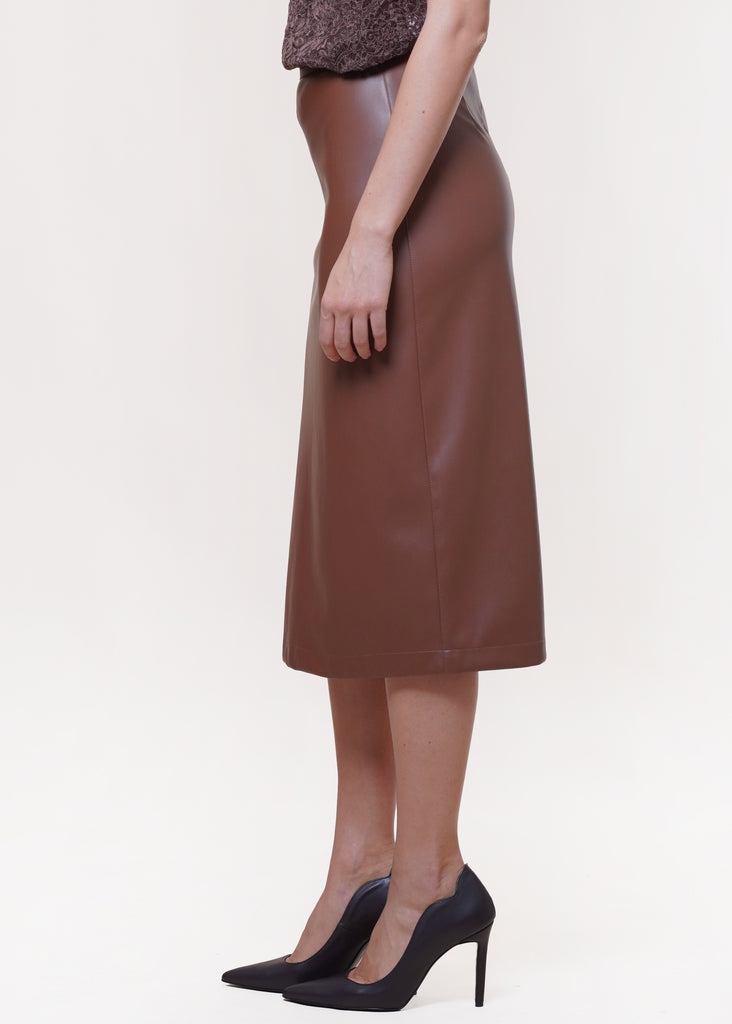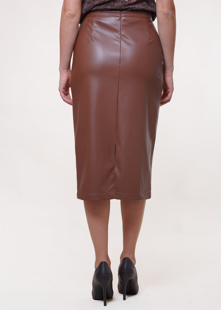 Dixie - Gonna midi in eco-pelle - TABACCO