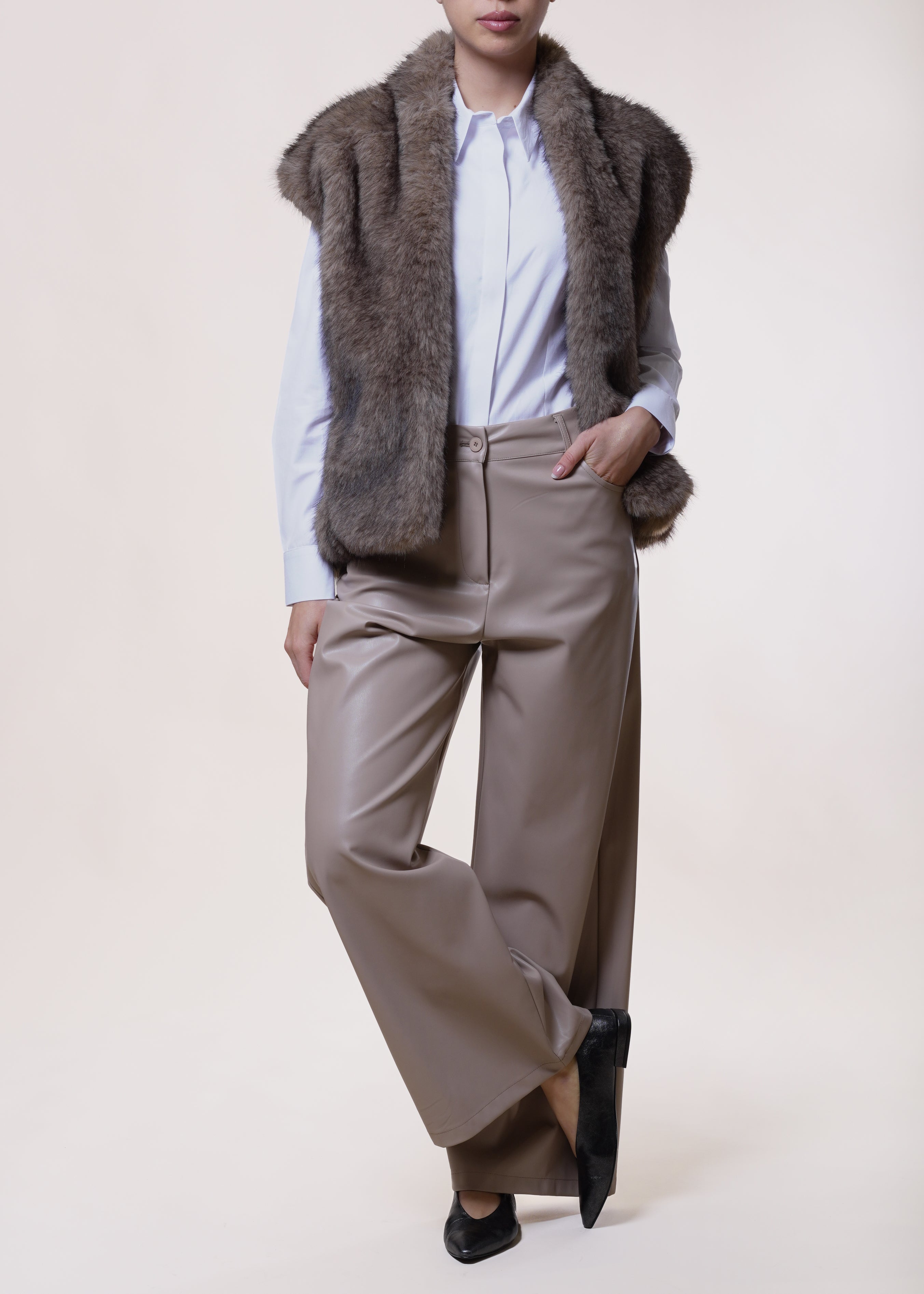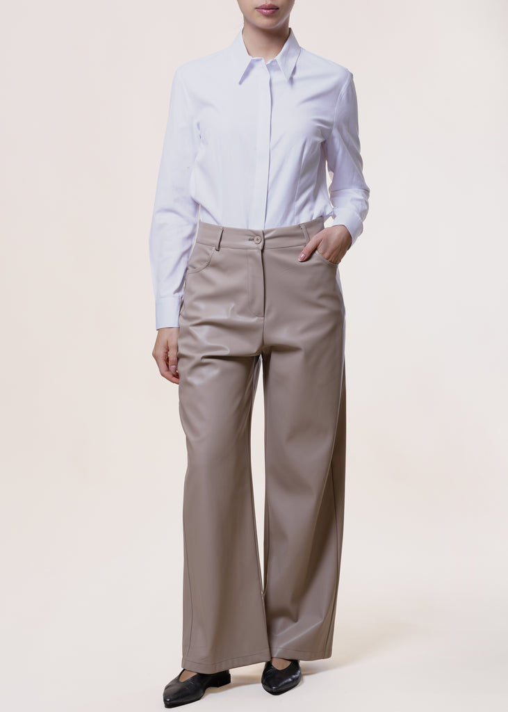 Dixie - Pantalone wide leg in eco-pelle - CREMA