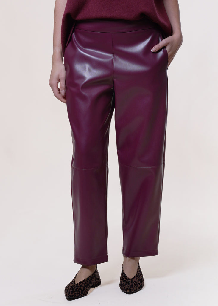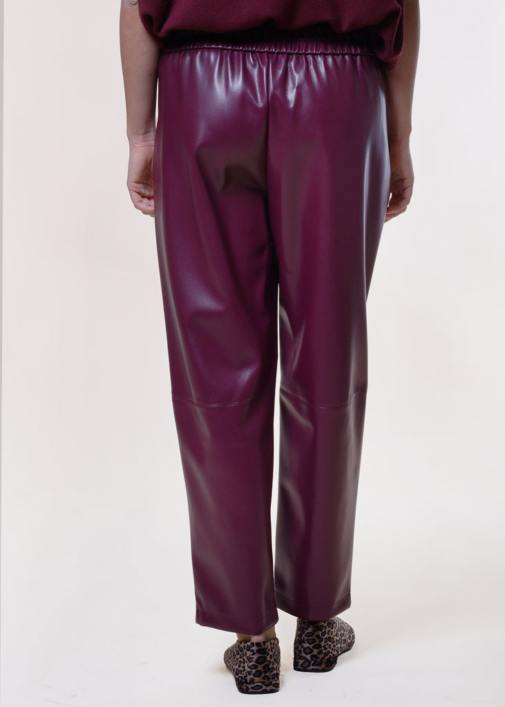 Motel - Pantalone baggy in eco-pelle con elastico - BORDEAUX