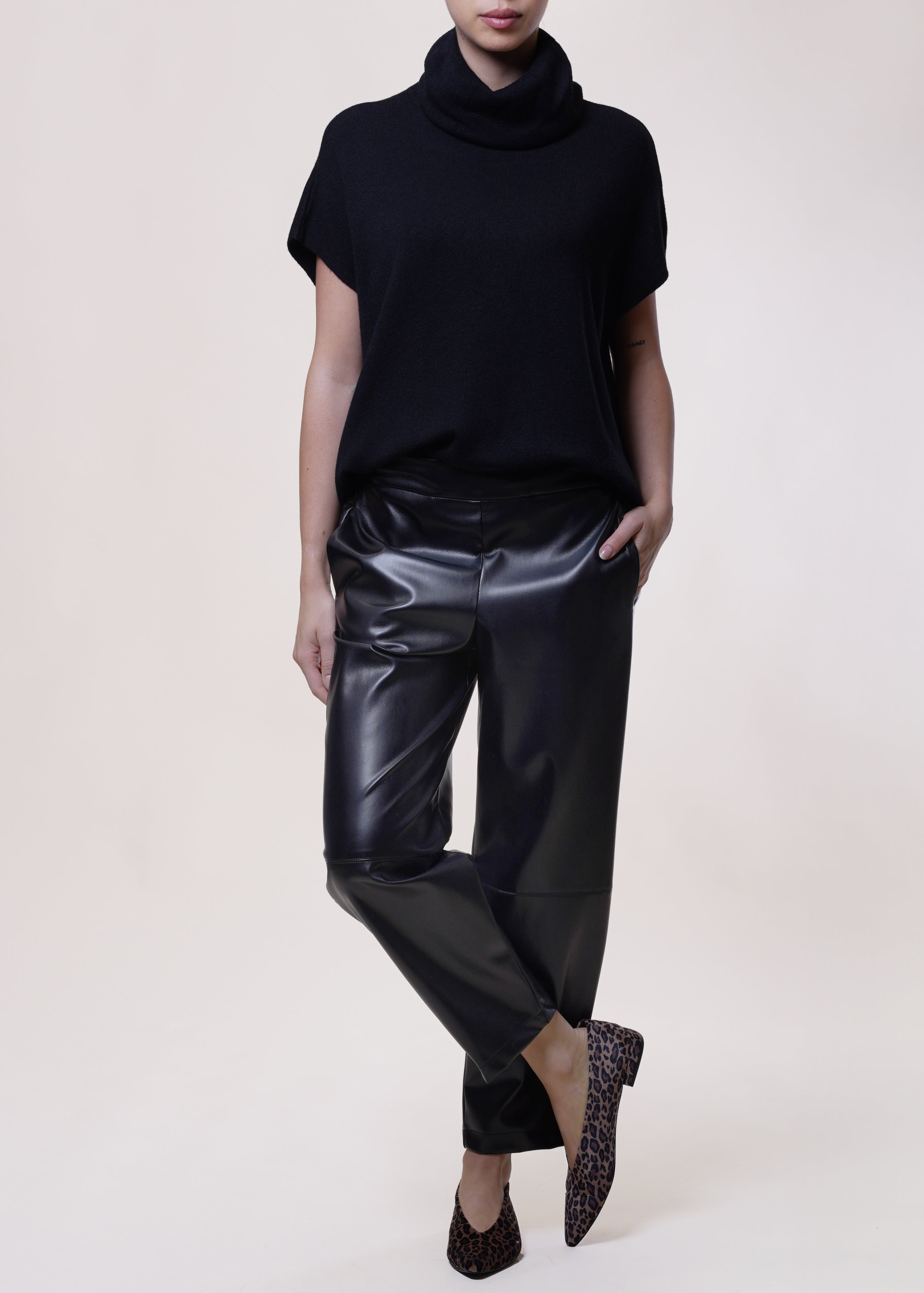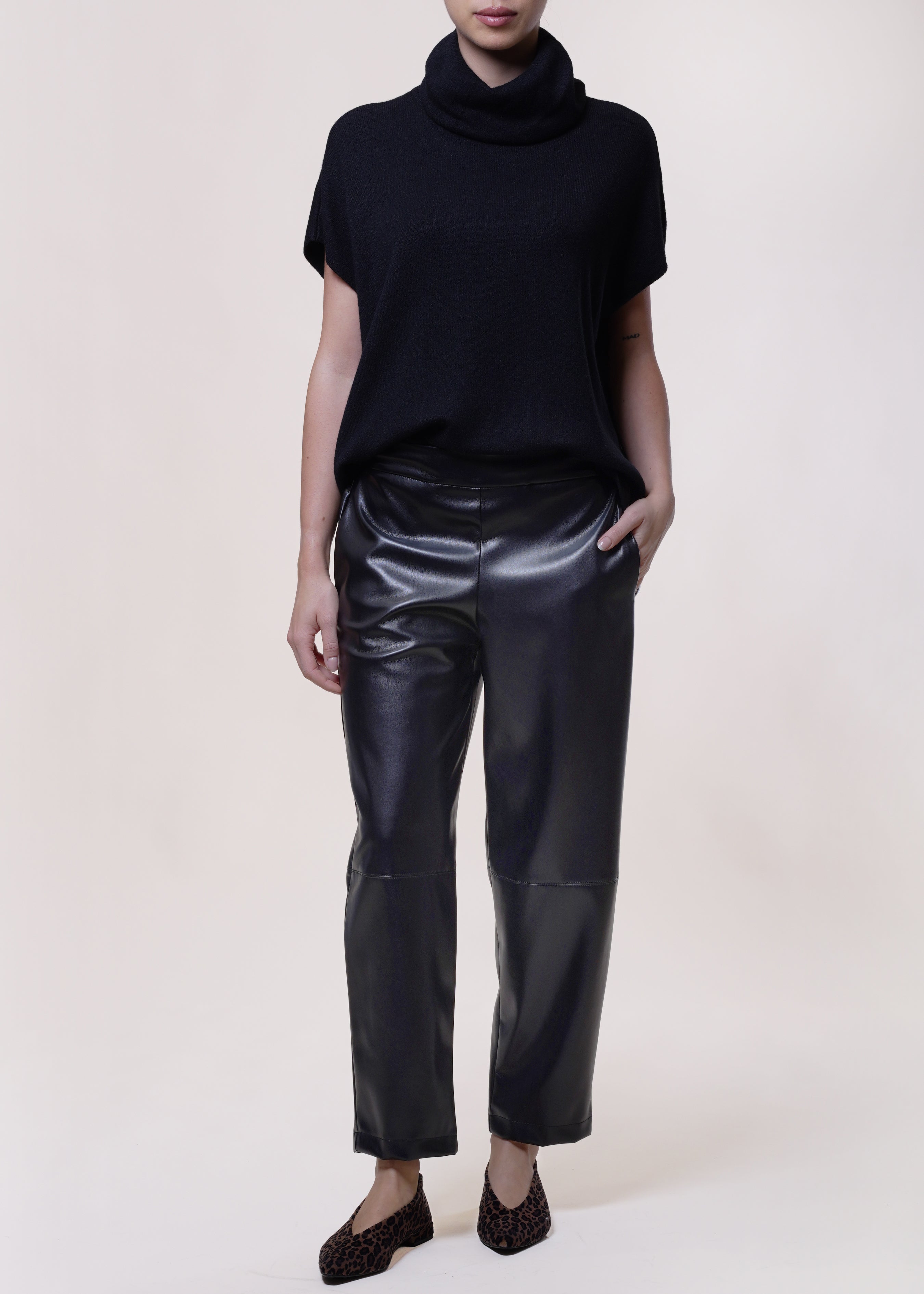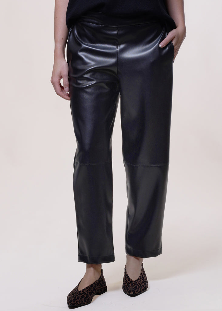 Motel - Pantalone baggy in eco-pelle con elastico - NERO
