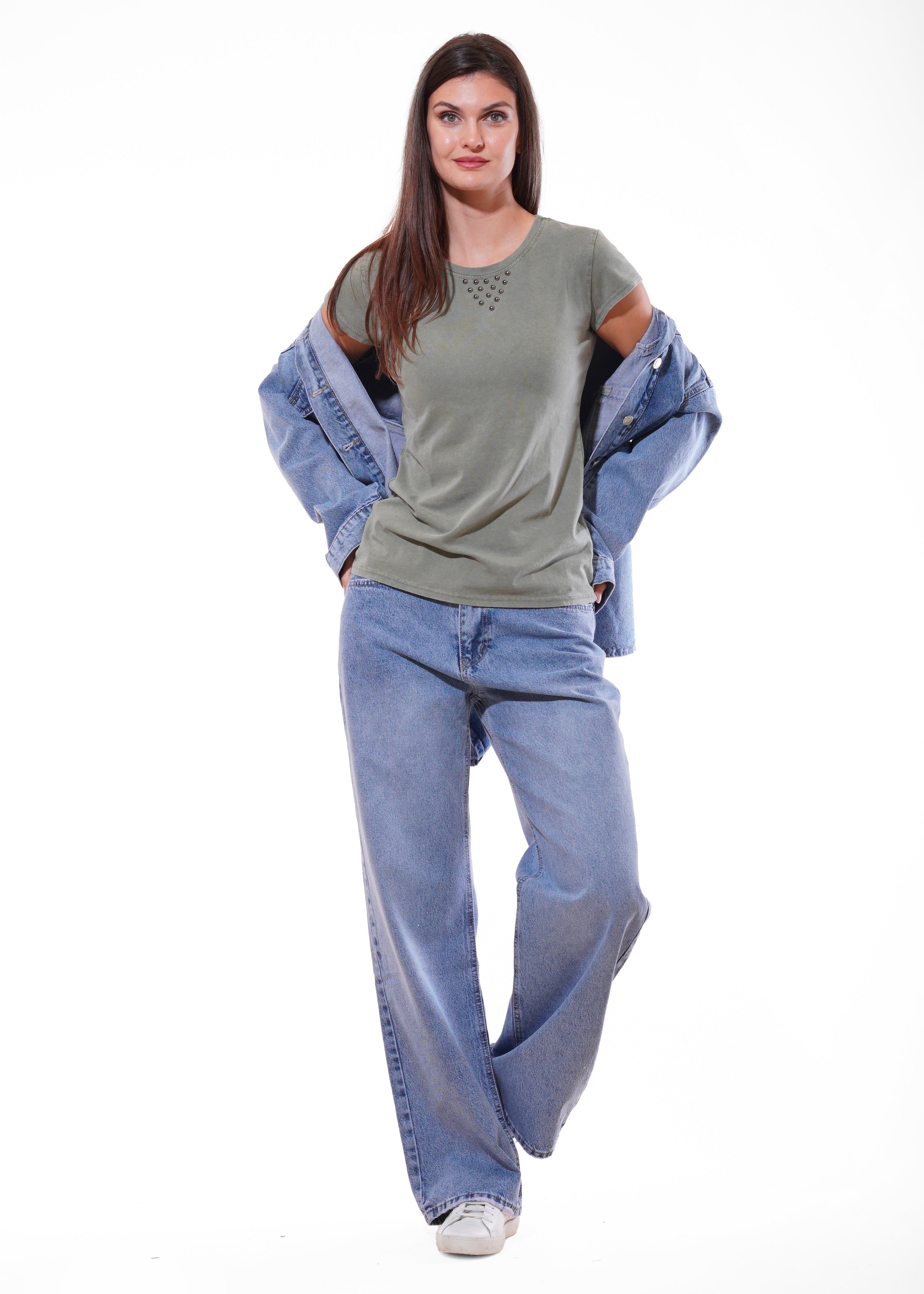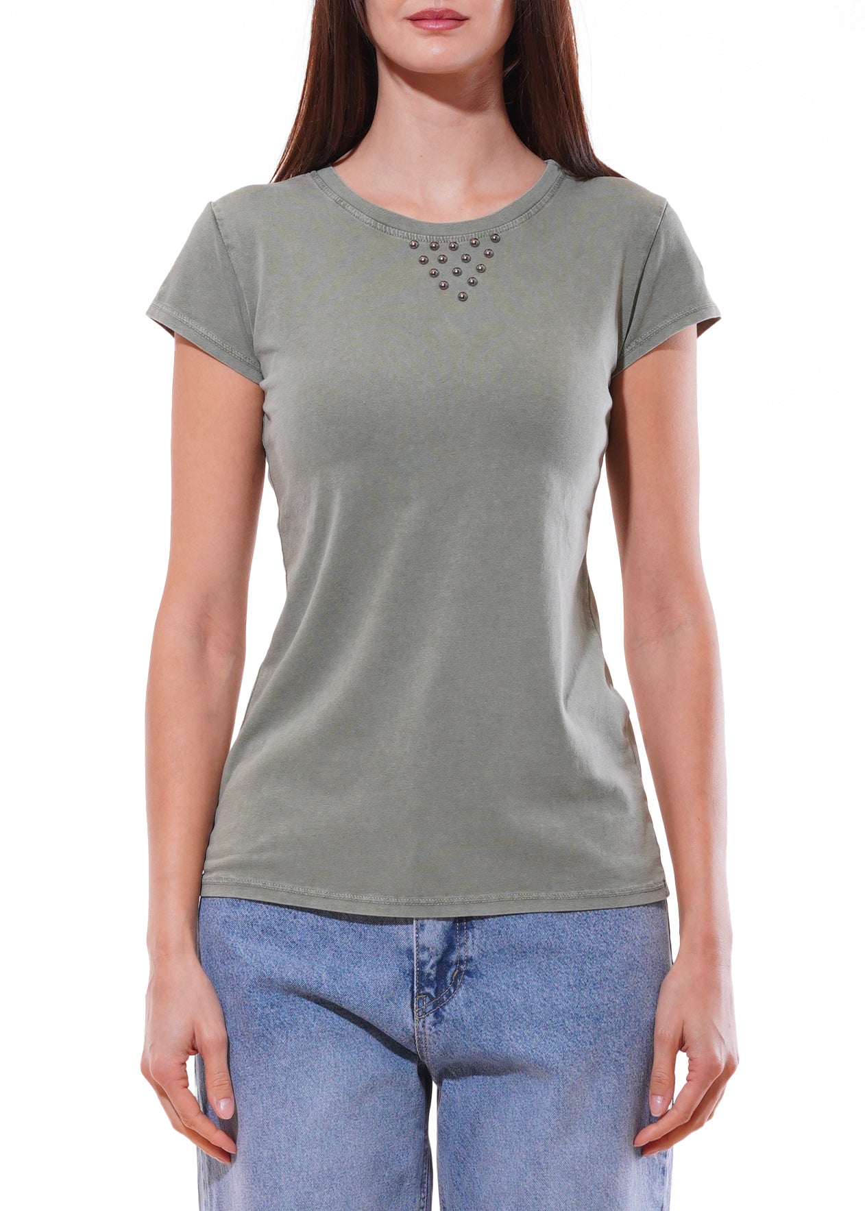 Susy Mix - T-shirt con borchie - VERDE OLIVA