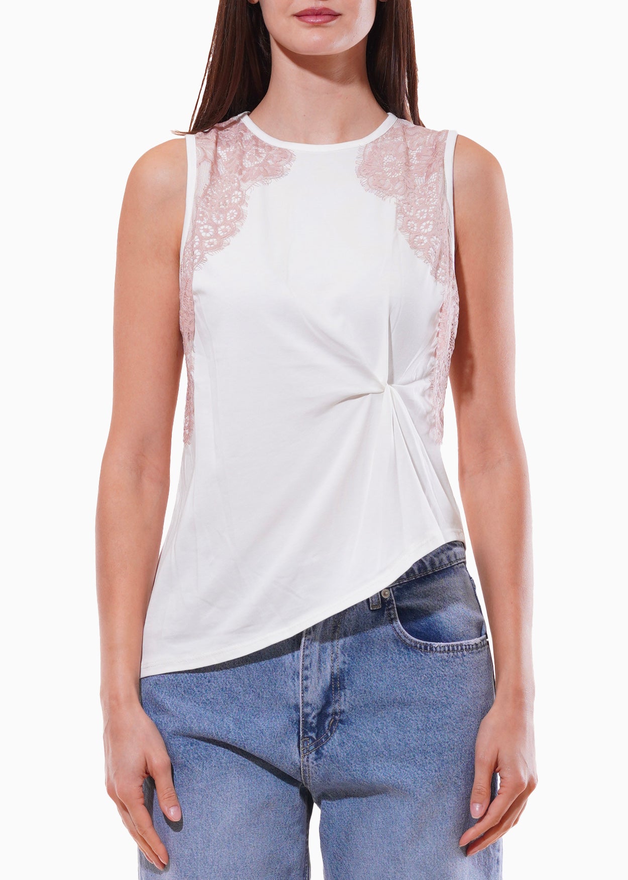 Susy Mix - Maglia smanicata con dettaglio pizzo - ROSA
