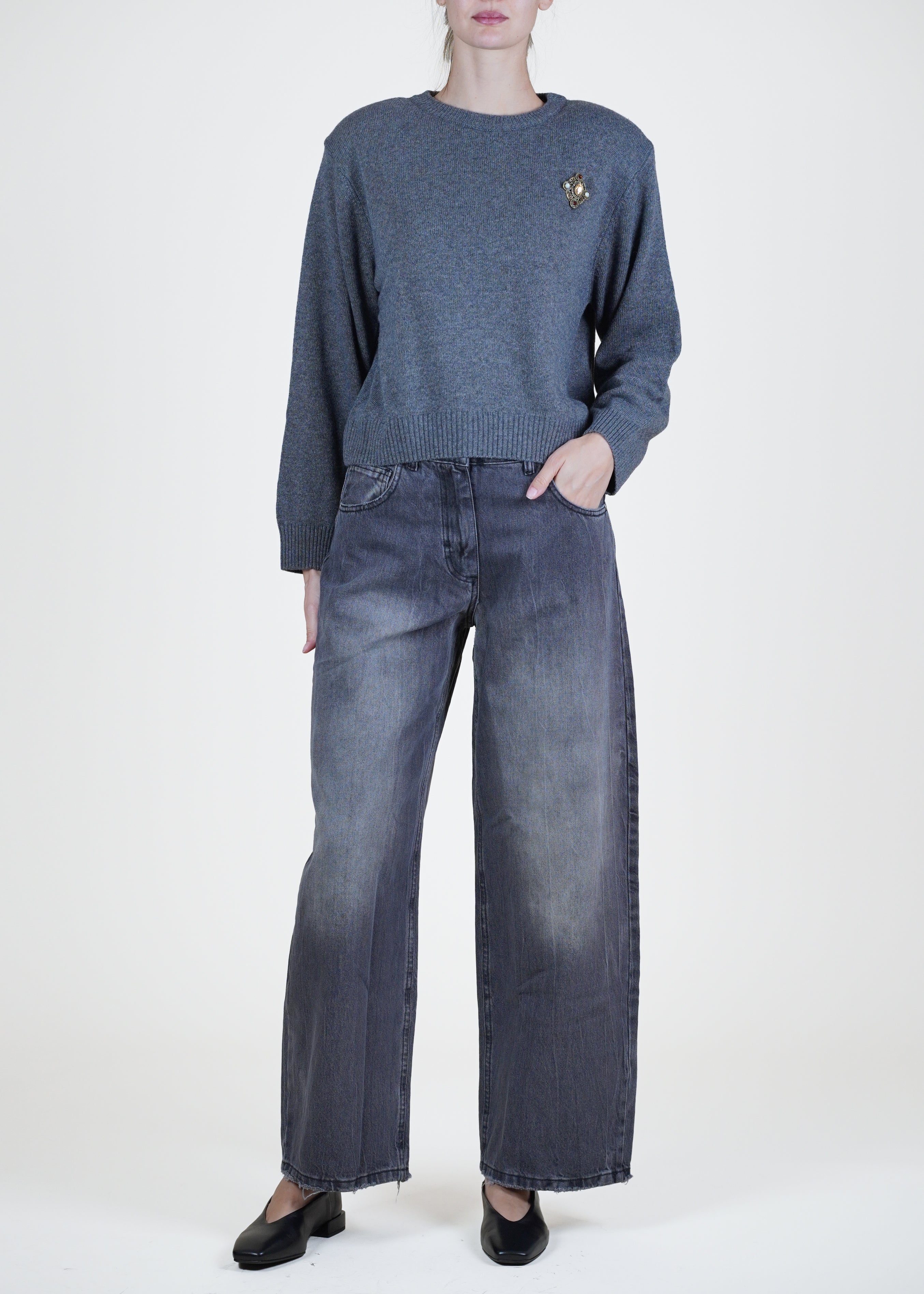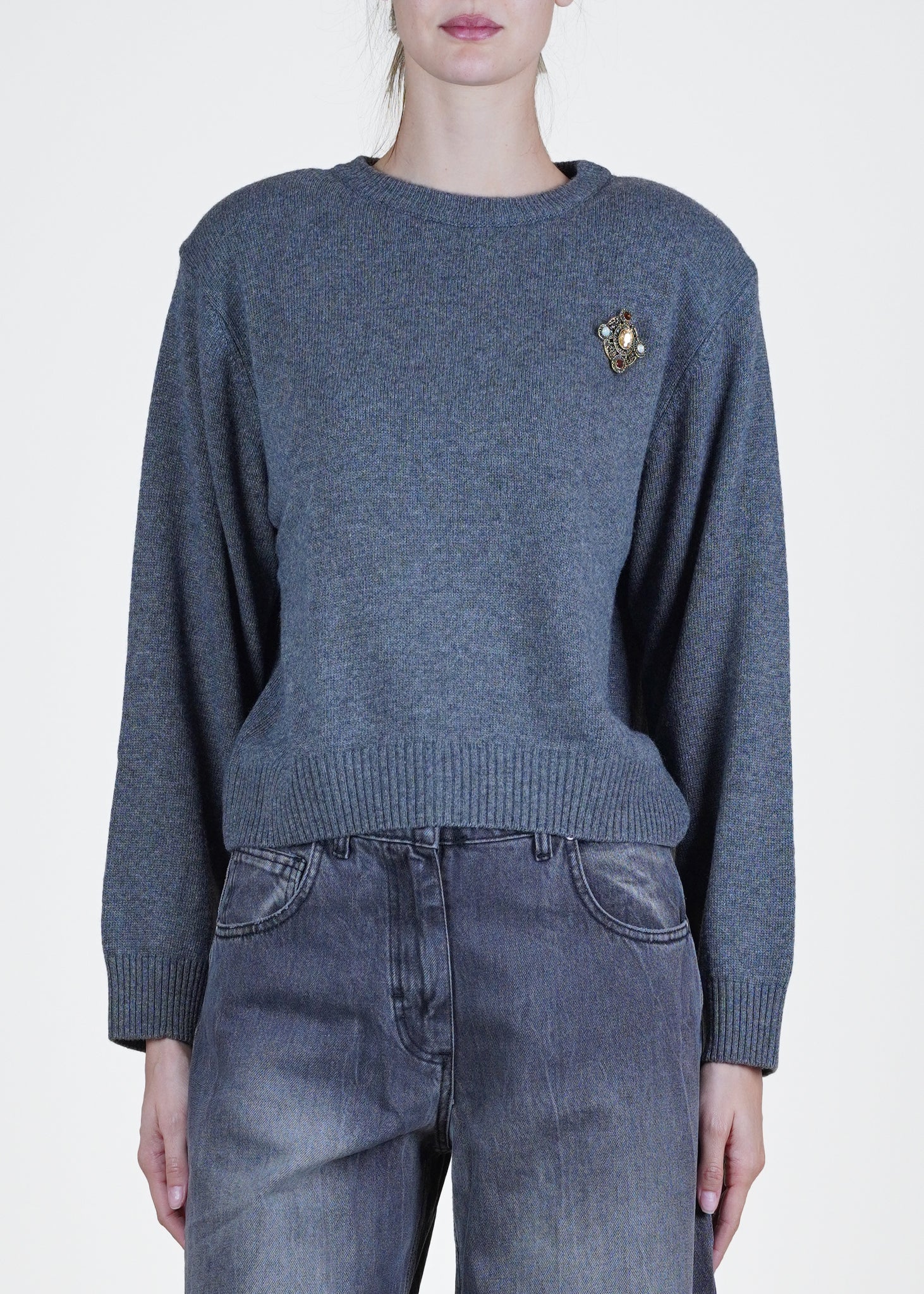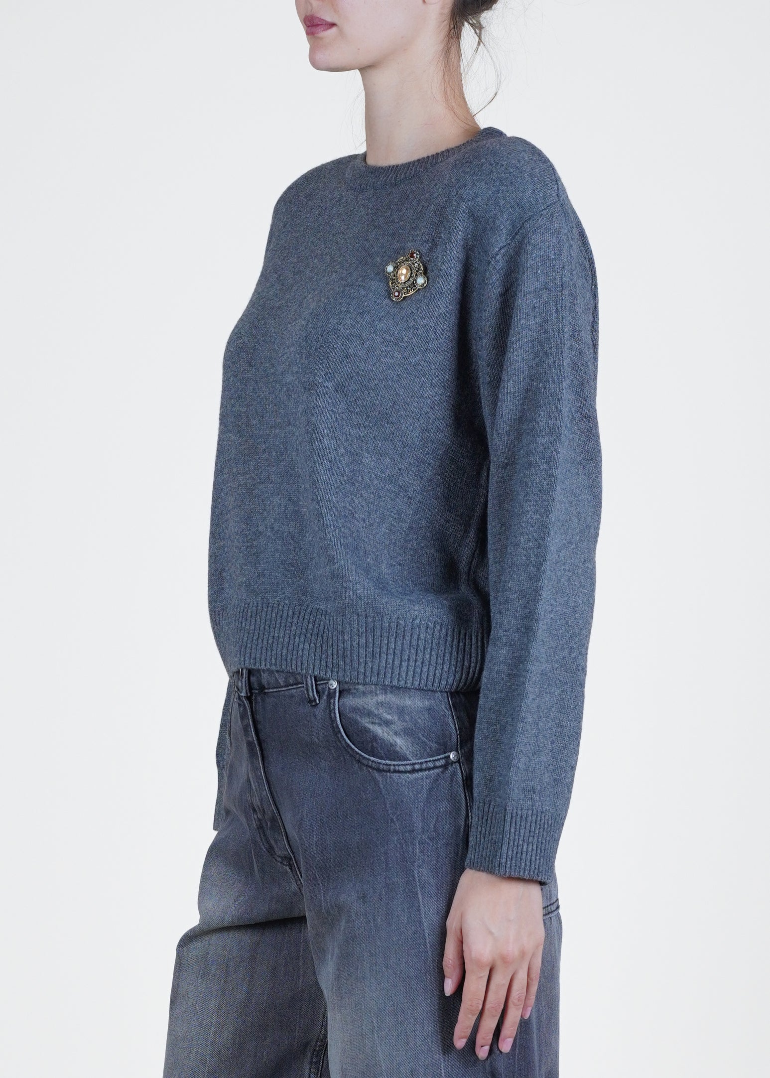 Motel - Maglia girocollo con spilla in misto lana - GRIGIO