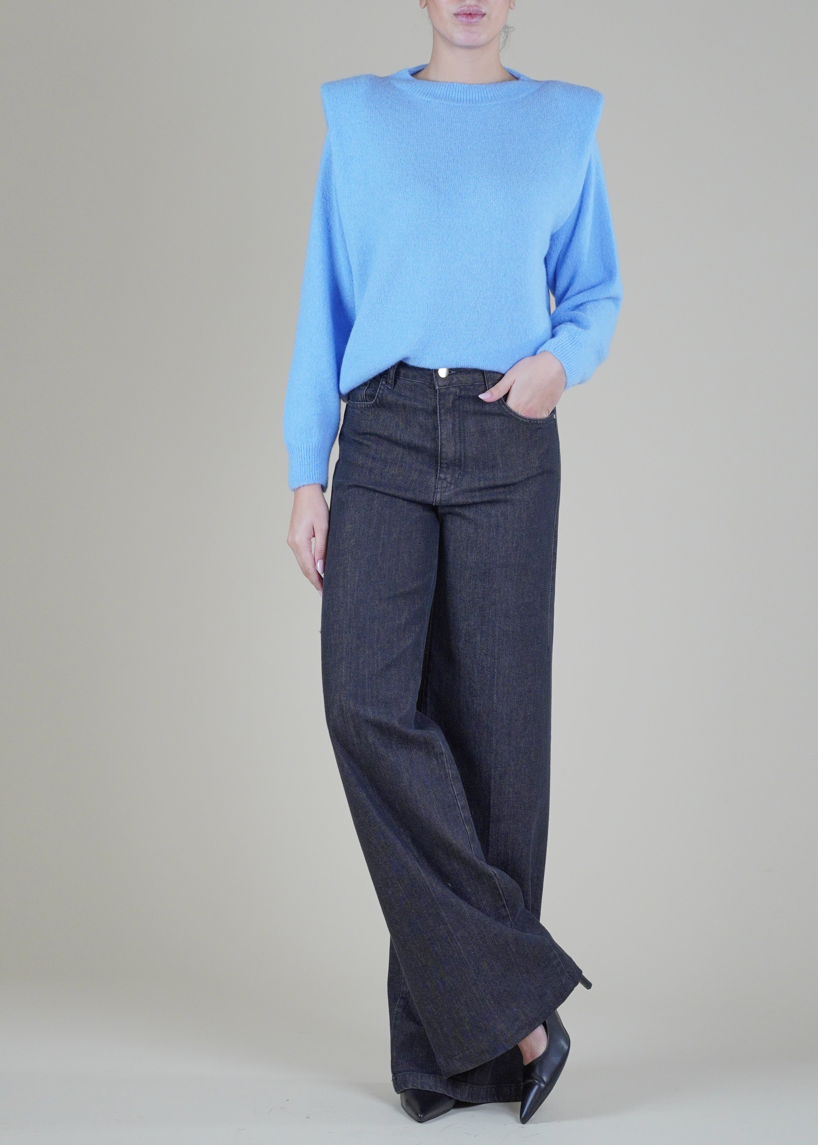 Dixie - Maglia in alpaca con spalline - CELESTE