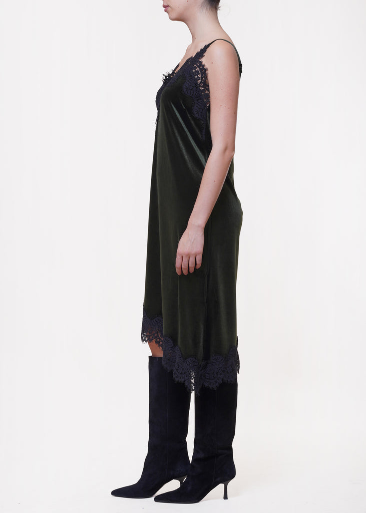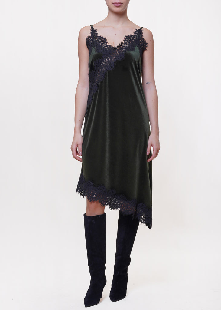 Motel - Abito in velluto asimmetrico con pizzo - VERDE