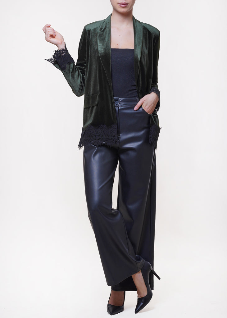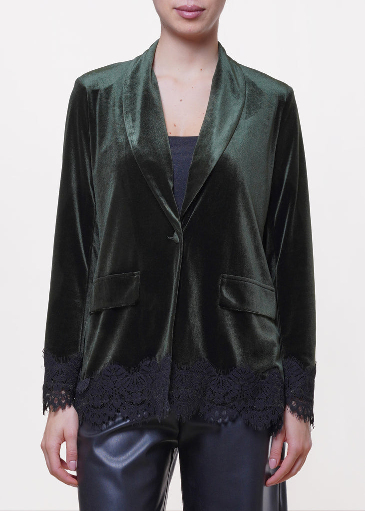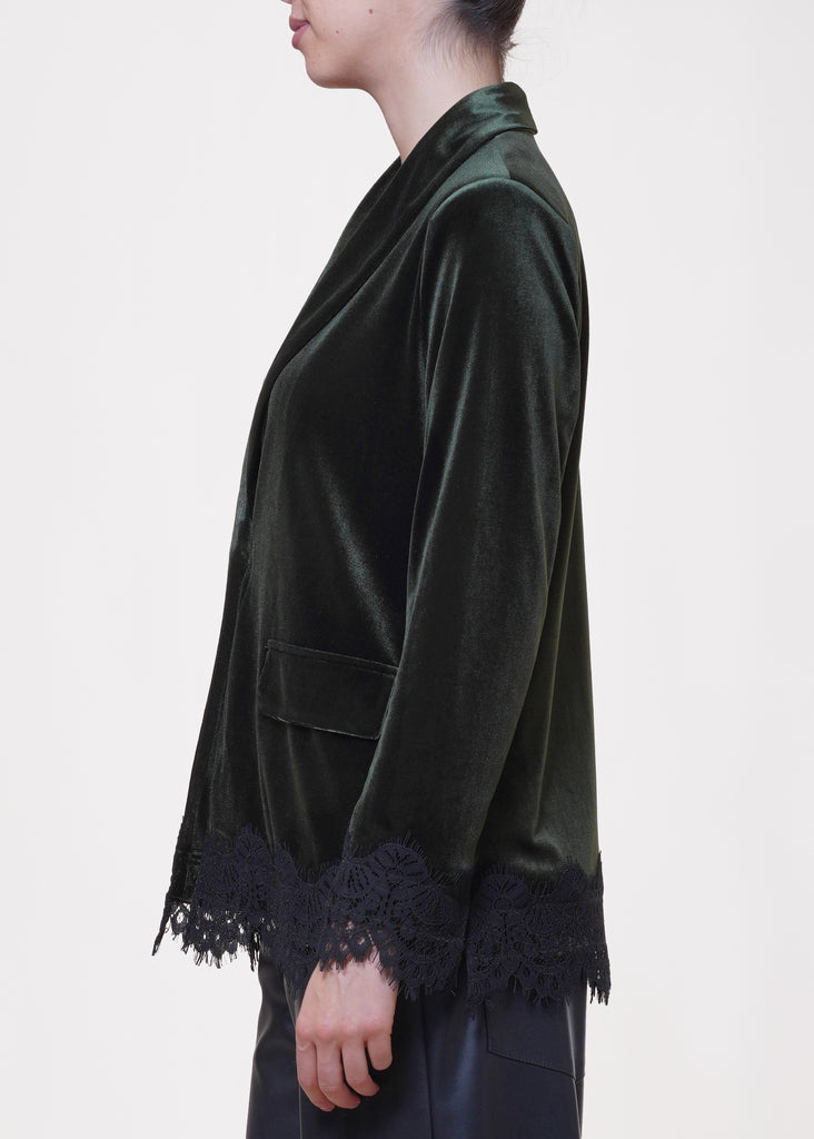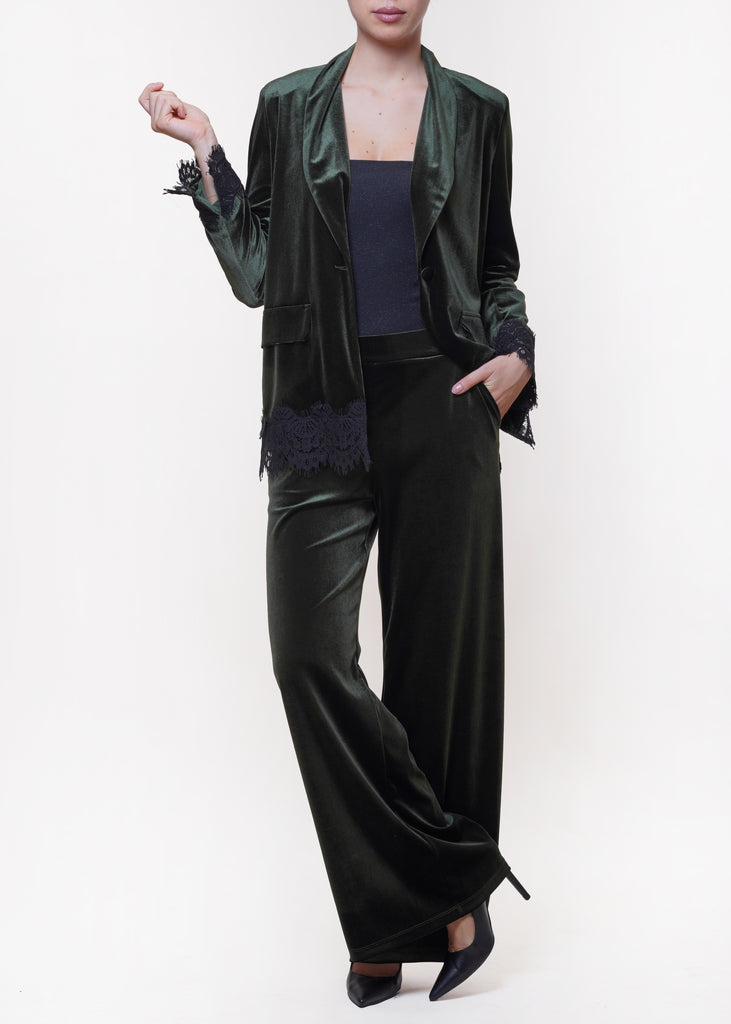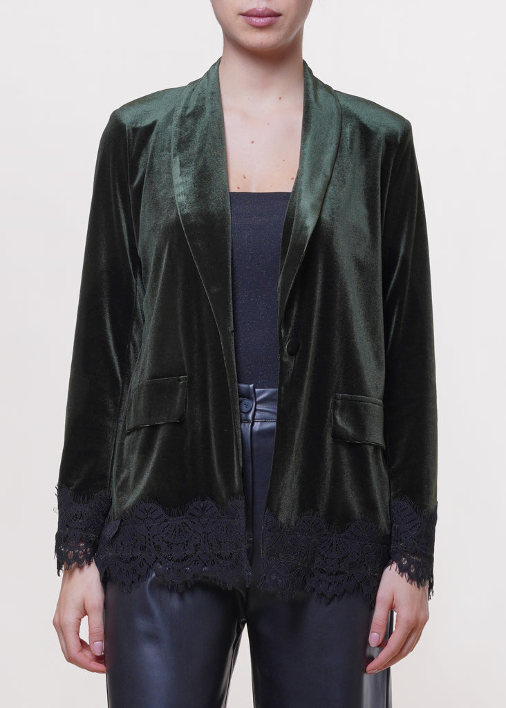 Motel - Giacca in velluto con dettagli pizzo - VERDE