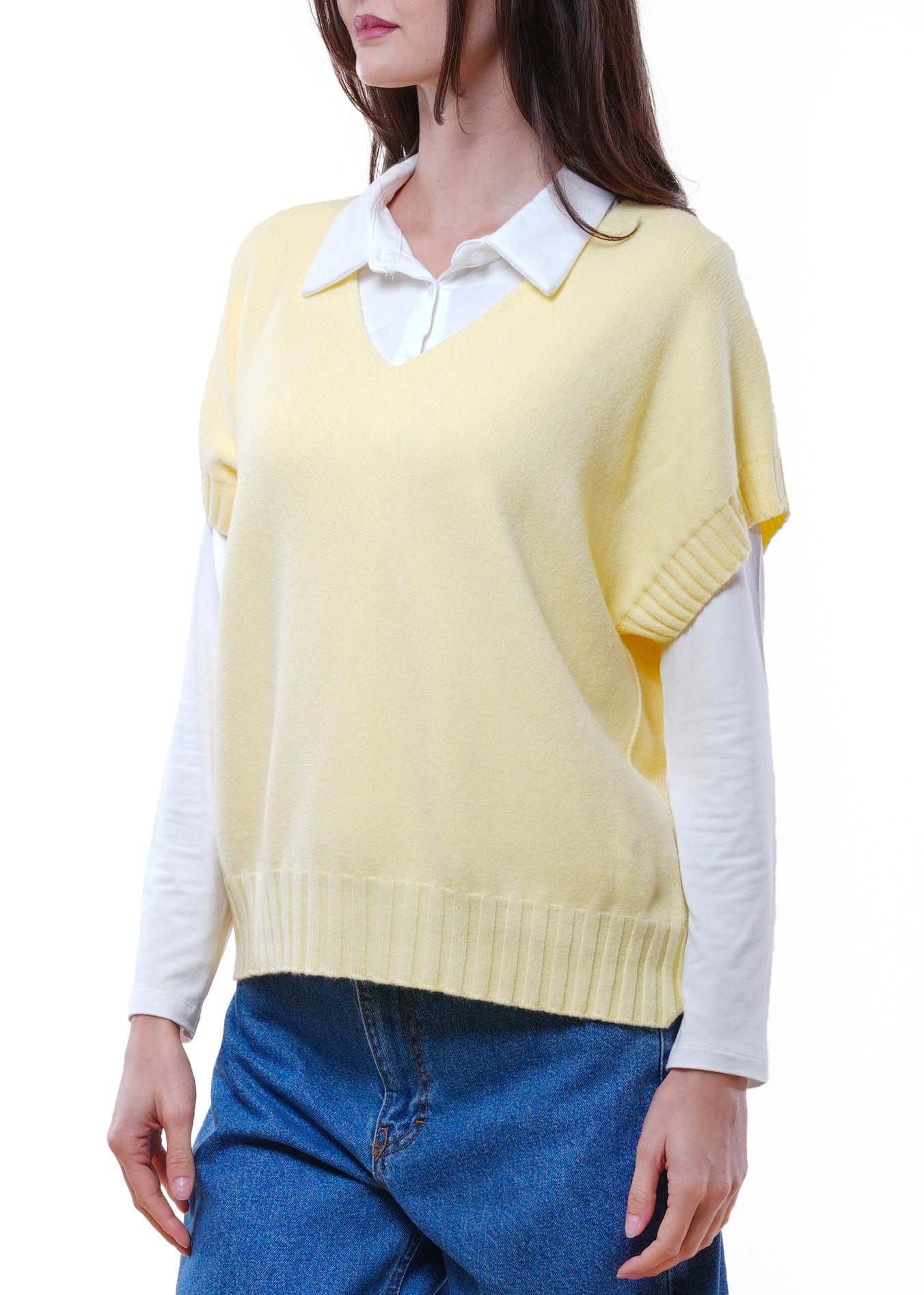 Anì - Gilet in maglia scollo V - GIALLINO
