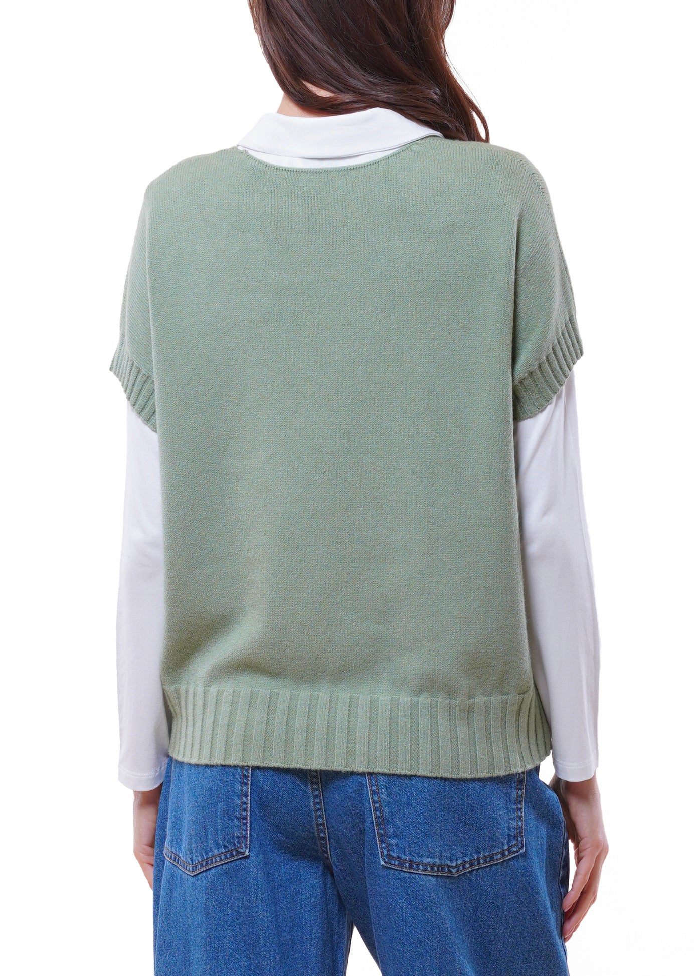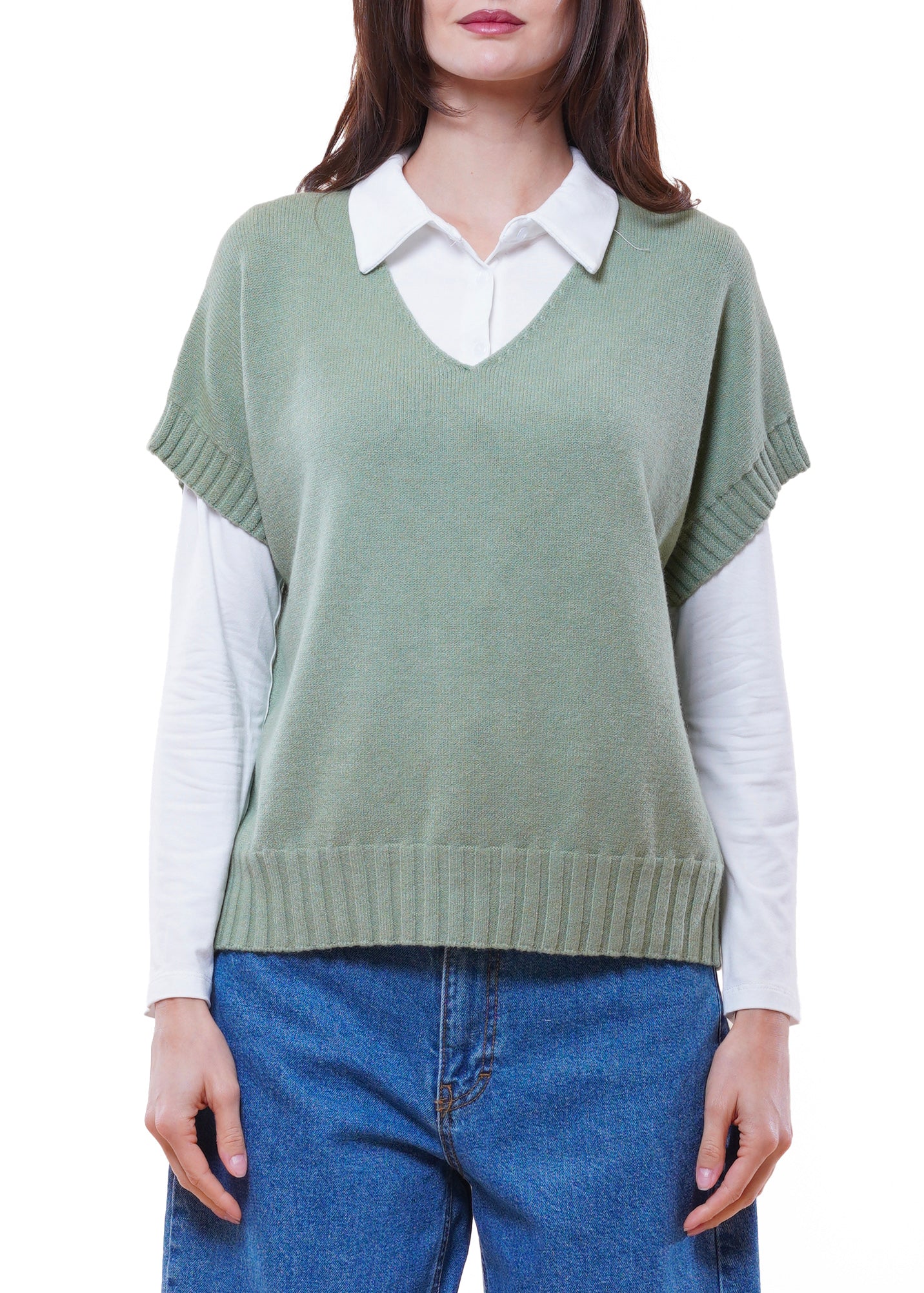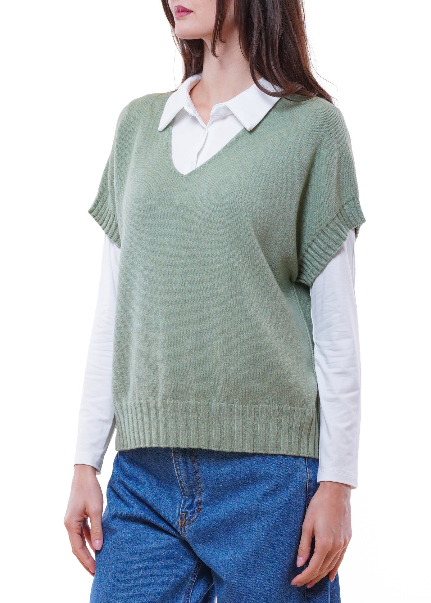 Anì - Gilet in maglia scollo V - VERDE SALVIA