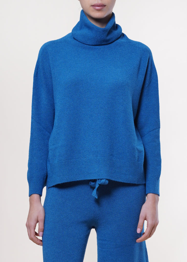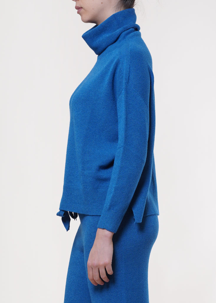 kontatto - maglia collo alto con spacchi laterali - ottanio