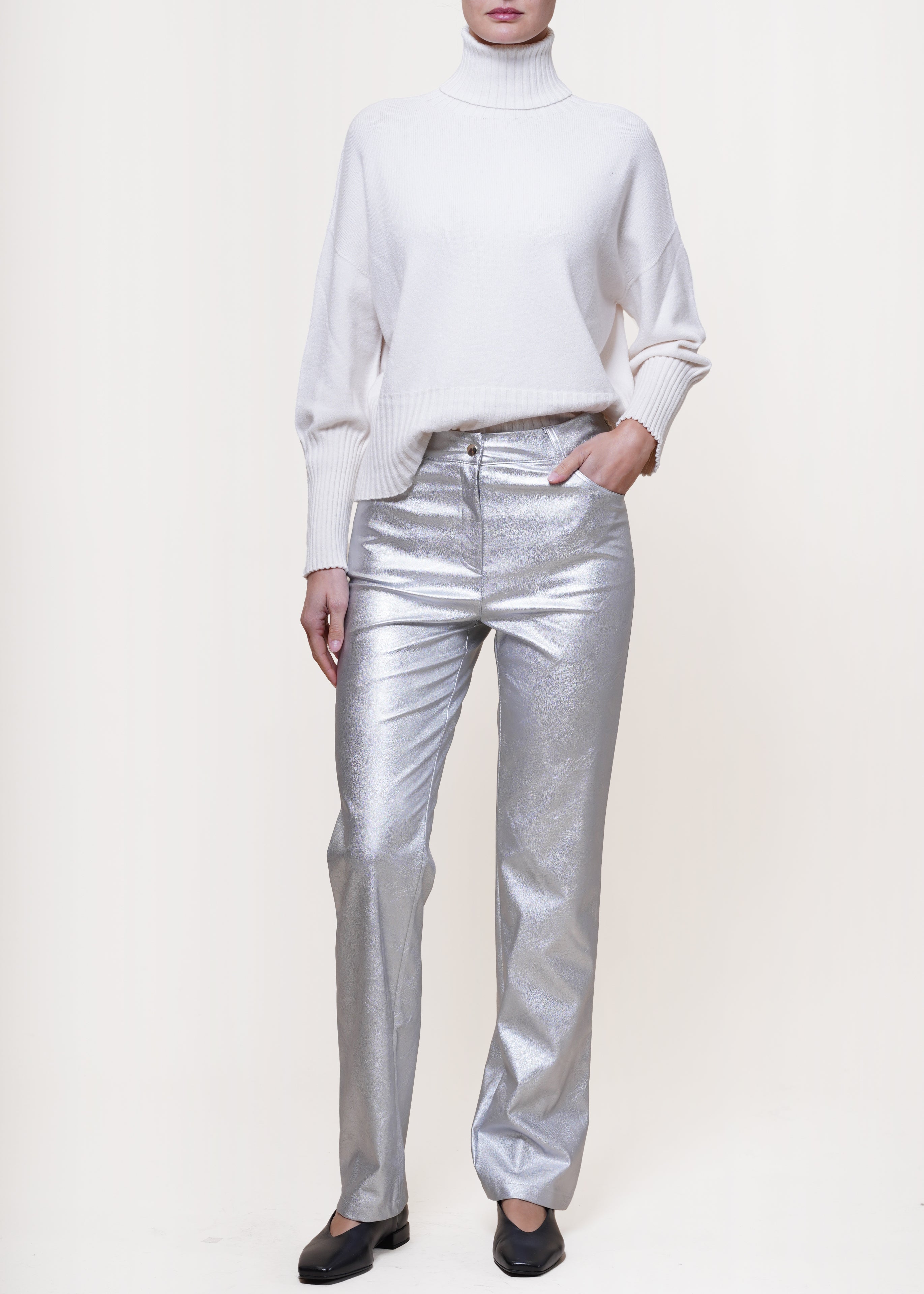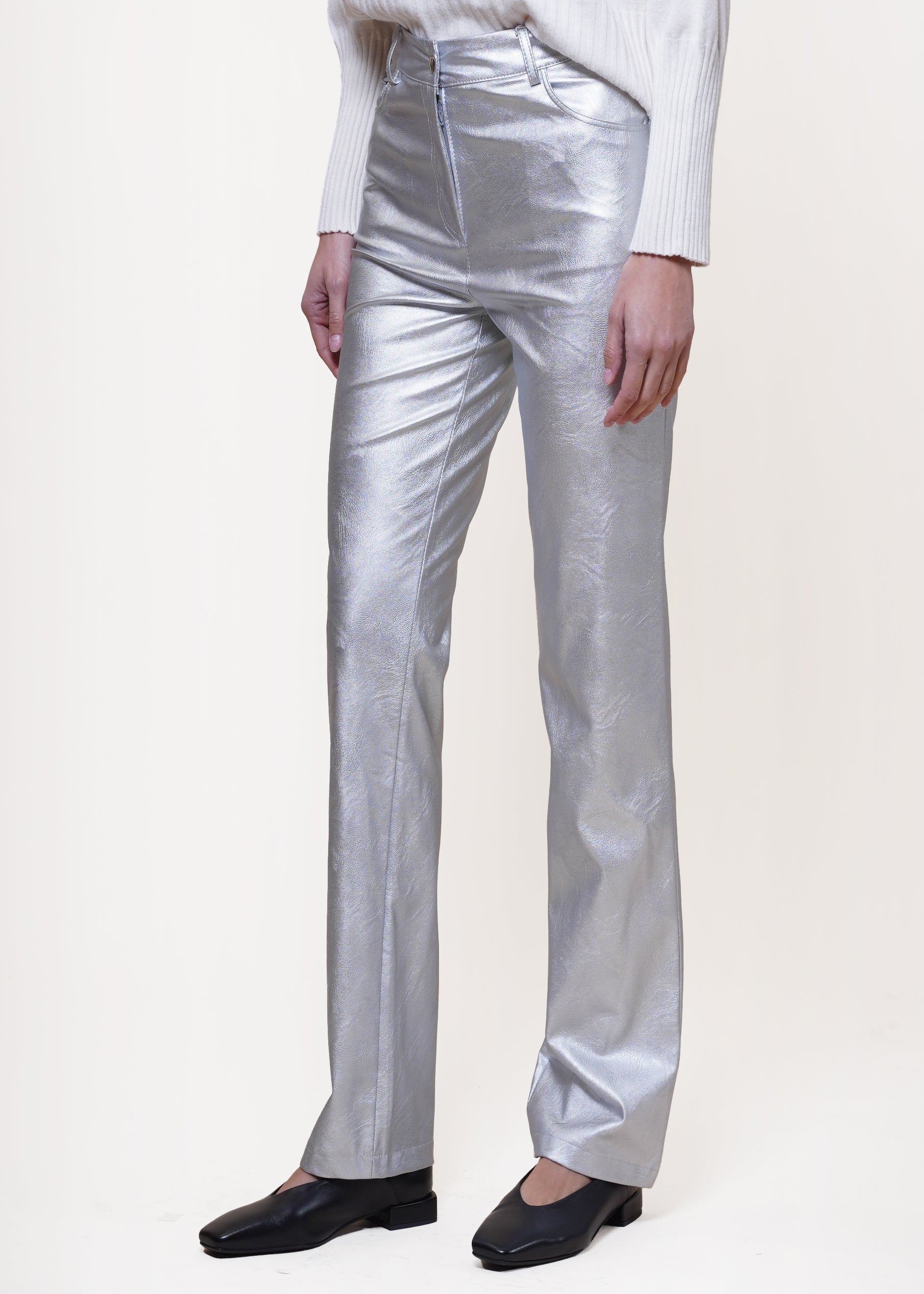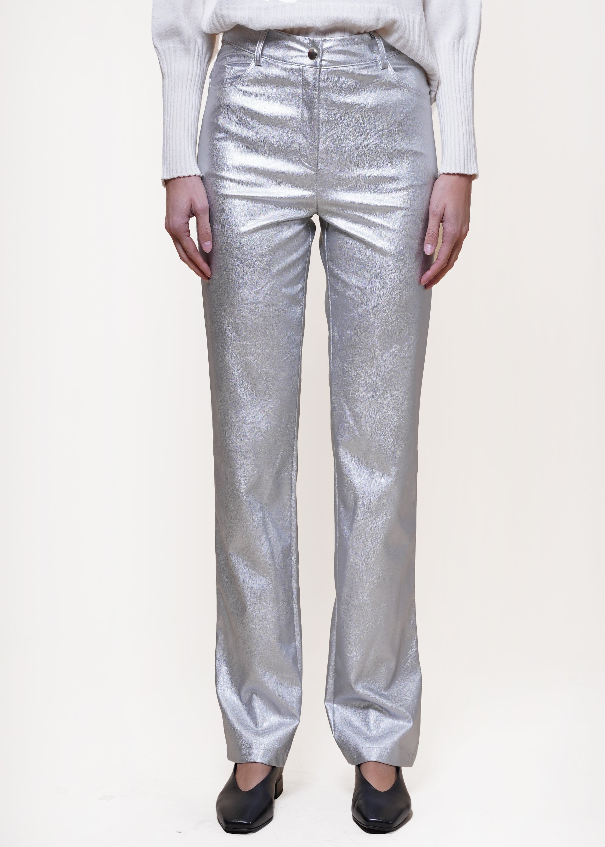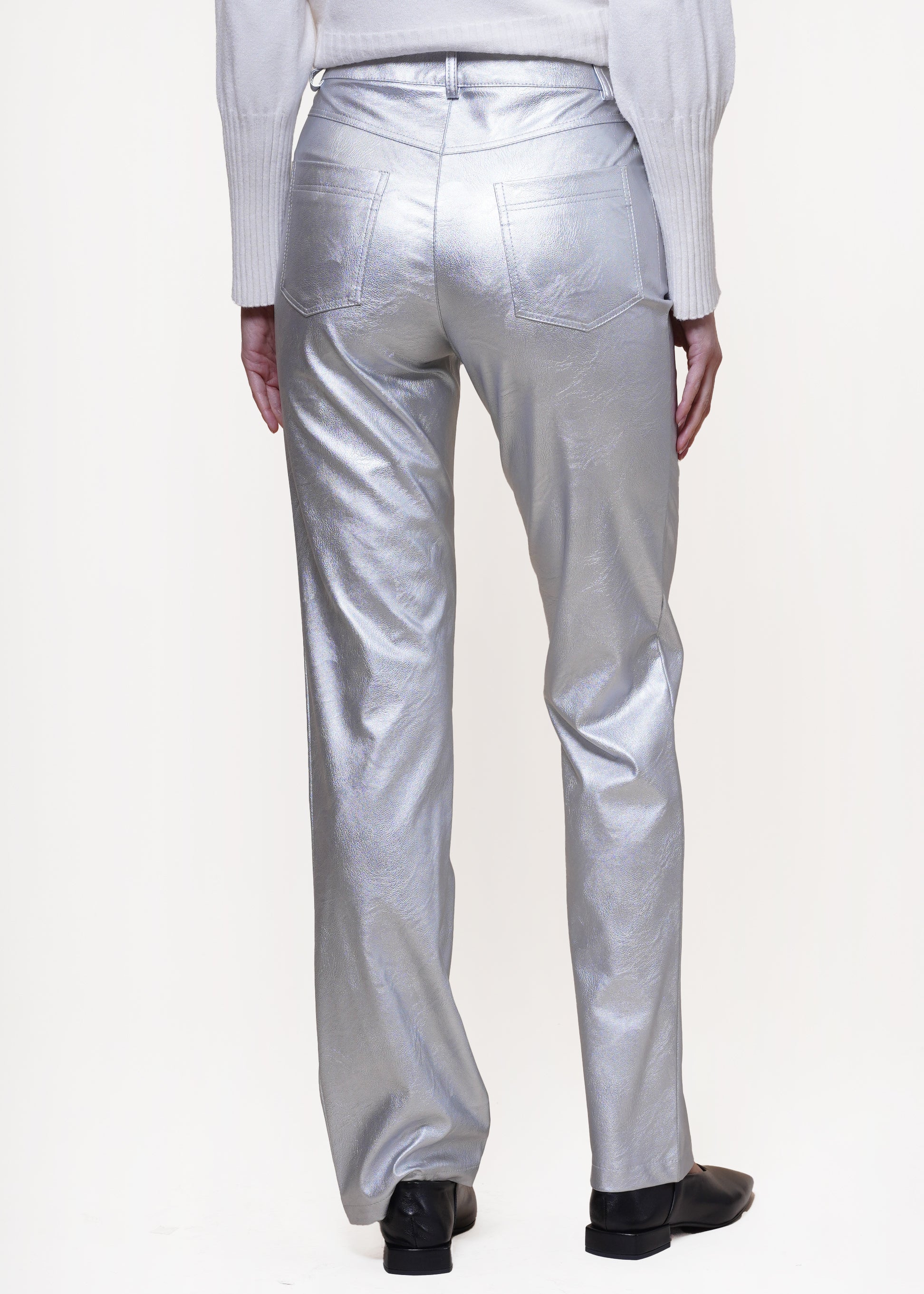 Motel - Pantalone dritto in eco-pelle laminato - ARGENTO