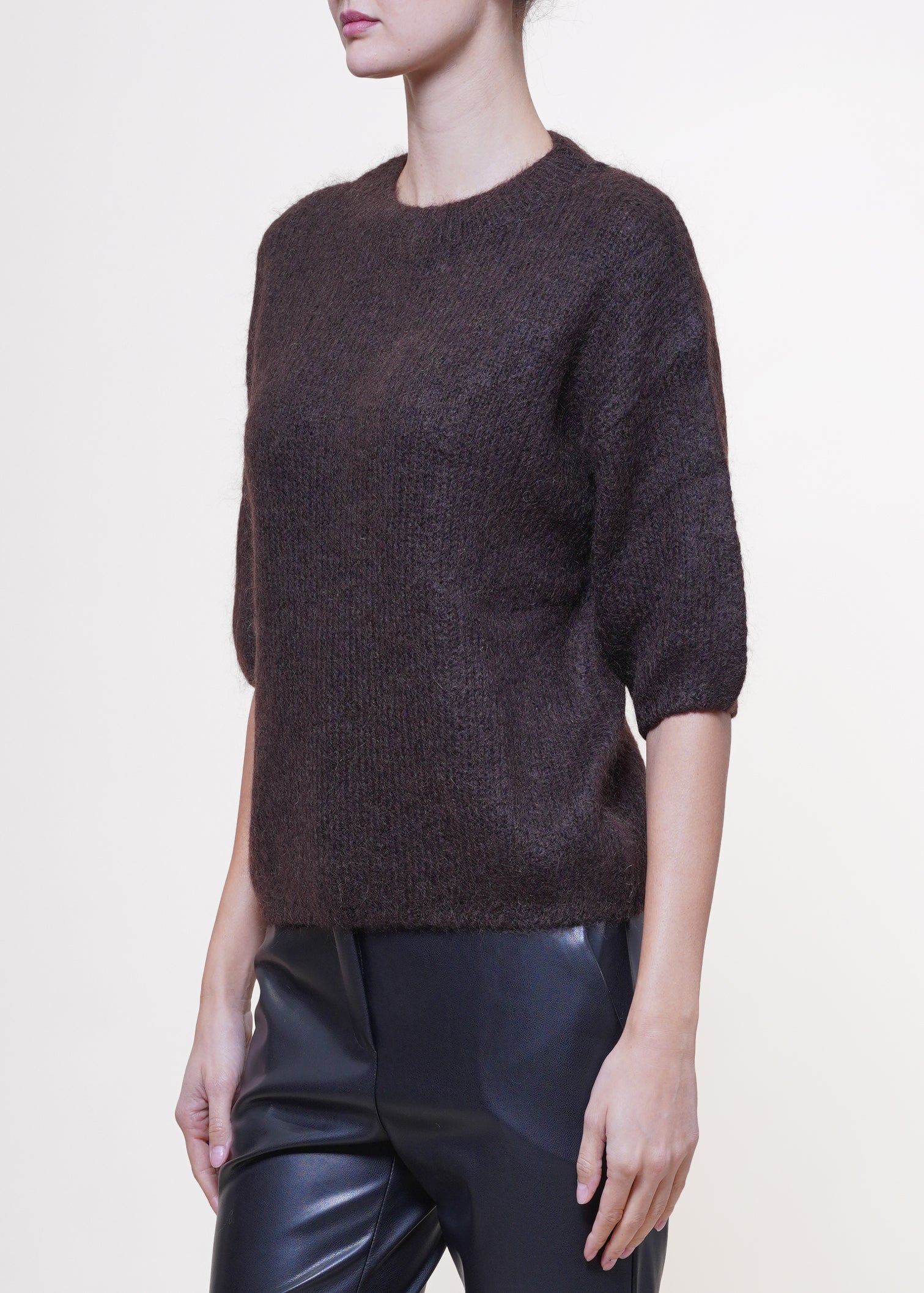 Anì - Maglia mezza manica in misto mohair e lana - MORO