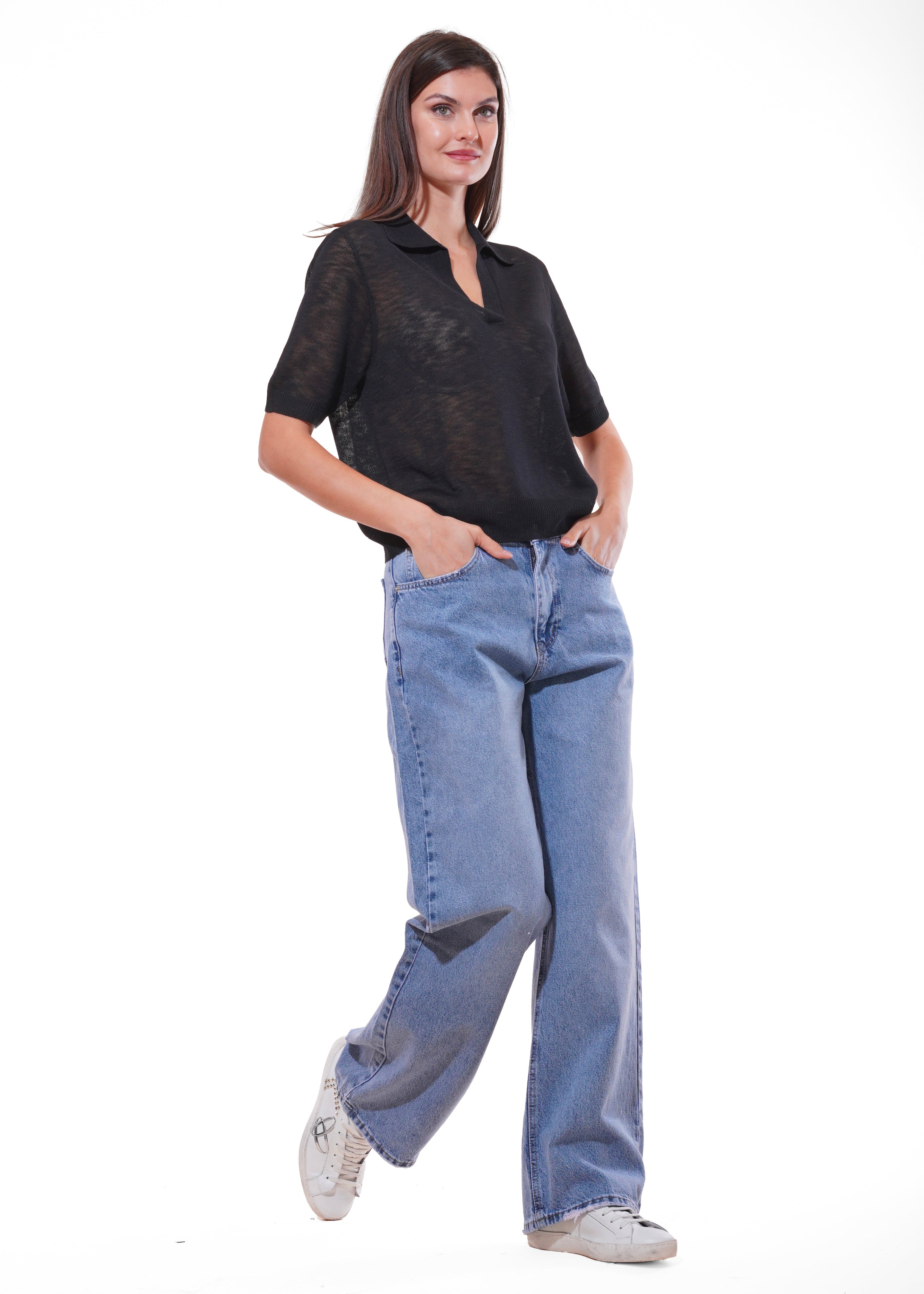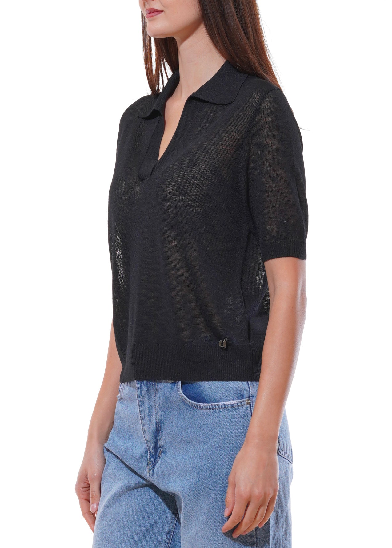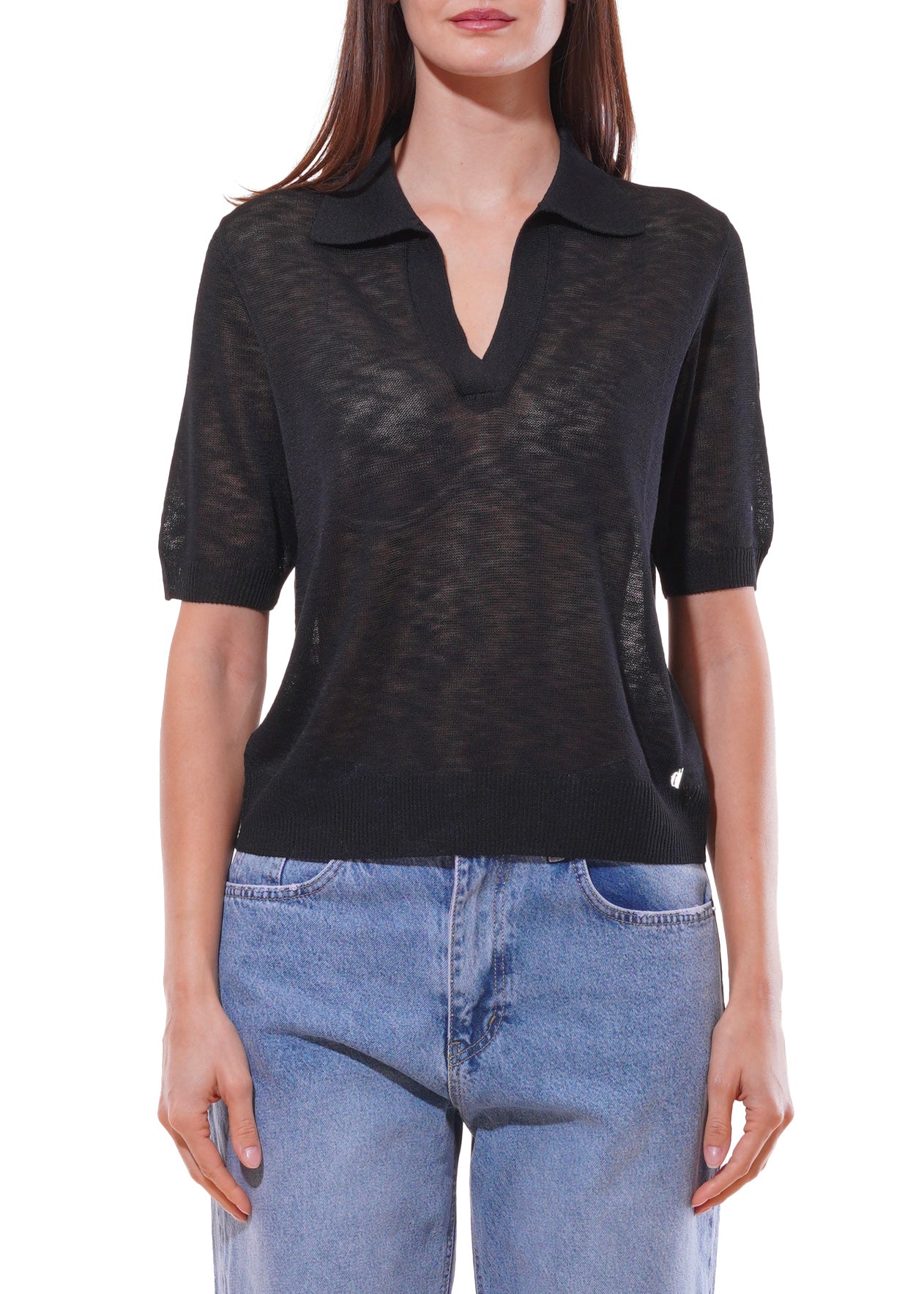 Dixie - Maglia collo polo tinta unita mezza manica - NERO